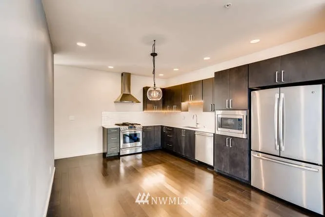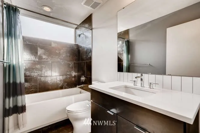 Huge Price Drop. Under assessed value Modern View home, set back off the street surrounded by plants and shrubs. Large open area for cooking and entertaining. Huge master suite with walk in closet and over sized shower. Bonus room with wet bar leading to large deck with stunning views of the sound,Mt rainier,the Olympics and the city. The rear yard gate leads out to the natural alley that has been planted with shrubs & plants. Easy Commute to Downtown or the UW. close to restaurants / shopping.