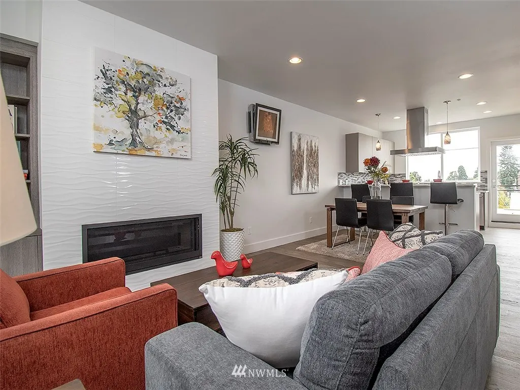 Seadog Construction presents stunning new construction townhomes! Integrated Kirio Smart Home Technology, controlled from your phone! 3 ensuite bedrooms + powder room. Quality materials & thoughtful details thru-out: custom iron handrails, gas fireplace, built-ins, Beko appliances, quartz counters, heated tile floors & decks w/ glass railings. Top floors capture Olympic Mountain views + Mt Rainier from the roof! Cedar deck rooftop is wired for gas grill. Dedicated covered parking off the alley.