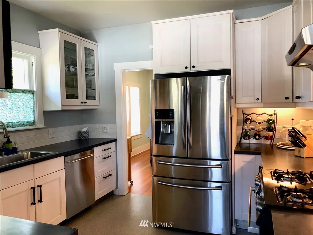 Classic South Capitol neighborhood home with historical features preserved including original hardwoods, woodwork & built-ins. 3 bdrms + loft w/2 baths & full, dry basement. Updated kitchen w/cabinetry, tile, SS appl including gas range. White brick FP w/gas insert. Large upstairs remodeled bath w/walk-in shower, tile & bidet. Updated plumbing & wiring. Covered front porch & large windowed back porch. Fenced backyard. Conveniently located close to downtown, Capitol campus, schools, bus & I-5.