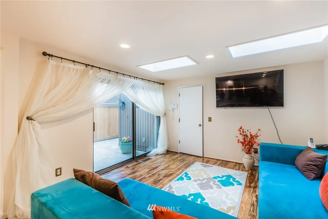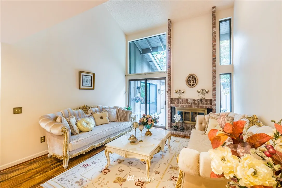 Superb Location! Open the gate to private court-yard, Open floor plan, Main floor features vaulted ceiling living room w/ fireplace, patio access & dining room, Expansive chef’s kitchen, 7x5 ft solid granite slab island w/gas stove top. Main floor Master Suite w/ access to fully fenced back patio. Staircase leads to 2nd area w/ mezzanine balcony overlooking living room & 2 bedrooms w/full bath, 2nd staircase leads to private&secluded second master suite with family room above 2 car garage.