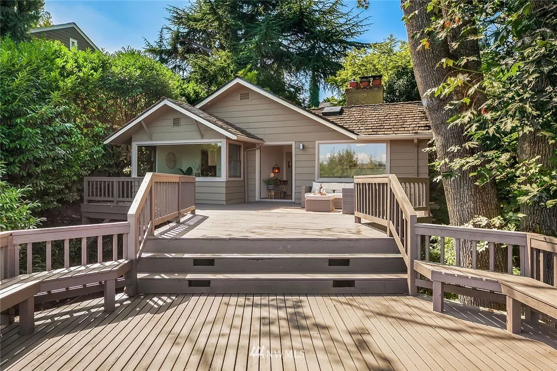 This private park-like setting creates the perfect city retreat in north Mount Baker. Enjoy mountain & lake views from inside your home & from the sprawling outdoor deck with plenty of room for dining, relaxing & entertaining. Main level features 2 bedrooms, living & dining room with great views! The lower level has great Airbnb potential & includes a den, bedroom & bathroom, + 2 bonus rooms, one of which could be converted to a kitchen to create a rental unit: MIL / ADU.