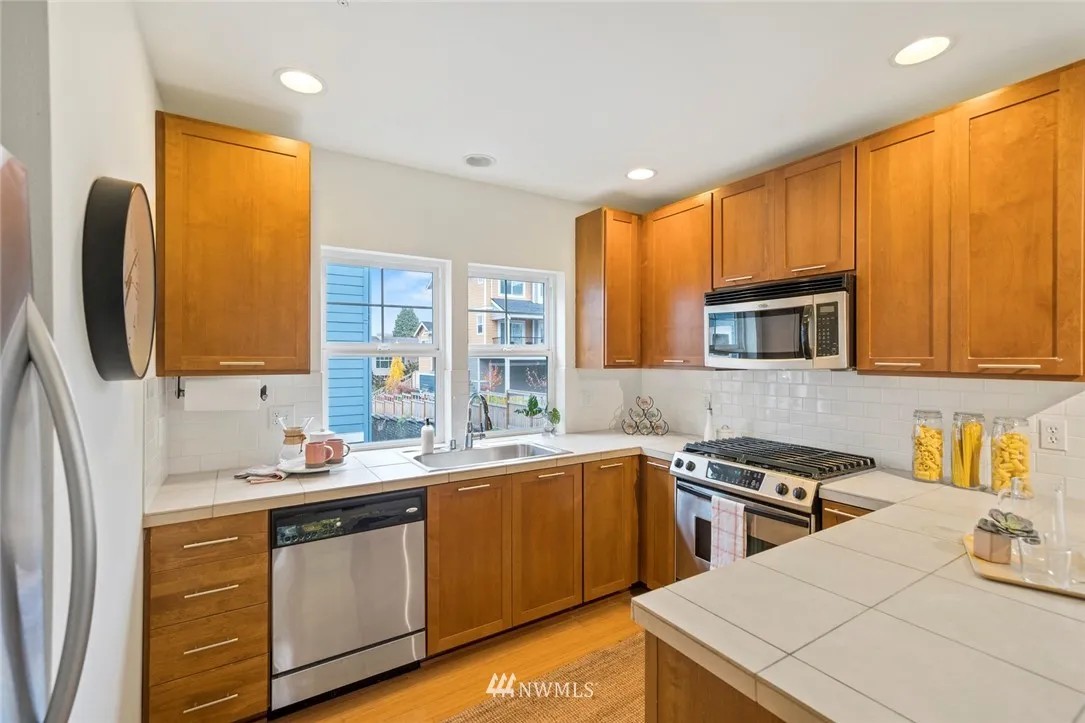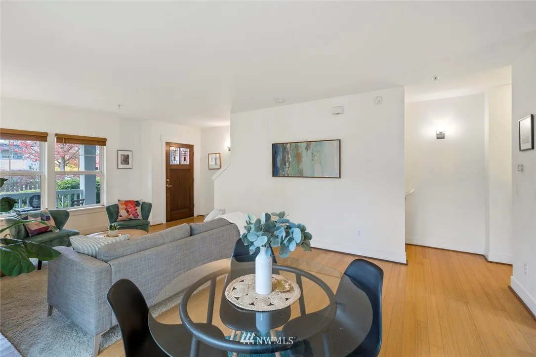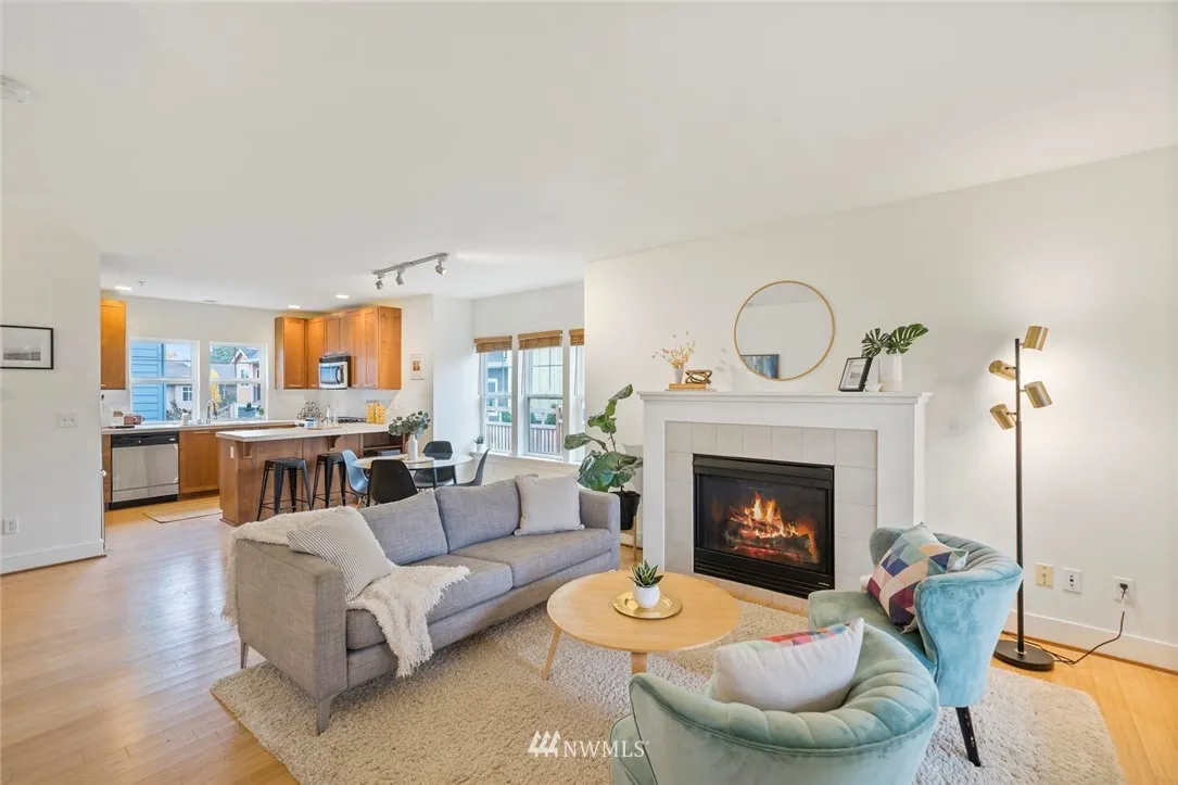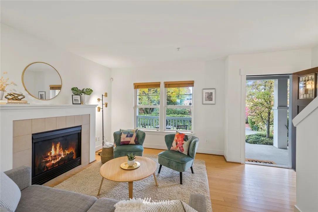 Spacious end unit townhouse in wonderful High Point community. Main level has open floor plan that flows to kitchen with ample counter space and S/S appliances, gas range. Bamboo floors & gas fireplace make for a cozy living area. 2 Master bedrooms, each with own en-suite bath, laundry upstairs. Bonus 3rd bedroom/office room on lower level, large garage. Sweet covered front porch, neighborhood has parks/playgrounds/walking trails, close to buslines! HOA dues cover most all exterior maintenance.