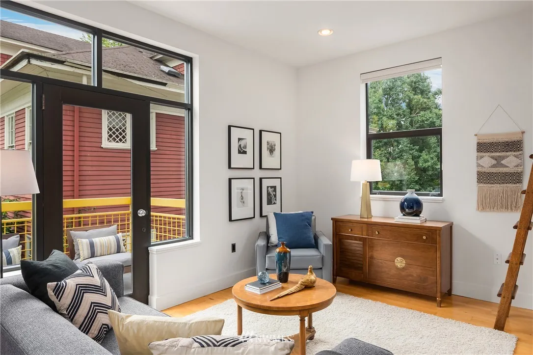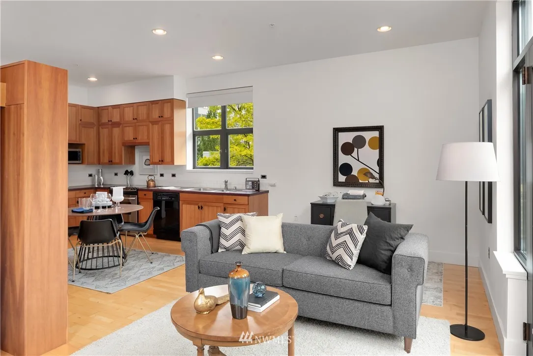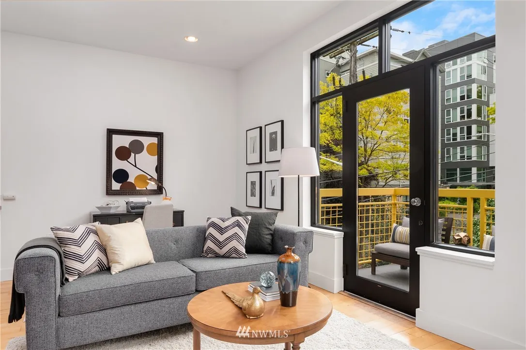Award-winning, boutique building, 2 blocks from the heart of Cap Hill. This bright corner unit floats above it all. Enjoy windows on 4 sides w/ only 1 shared wall, 10ft ceilings, a lofted sleep area, large bathroom, in-unit washer/dryer, flexible layout, private deck & more. Built-in shelves, walk-in closet & an additional storage unit help the home live large. Secure building, low dues, strong HOA, rooftop terrace & transit options galore. Your new life on the Hill starts here! Nothing like it!