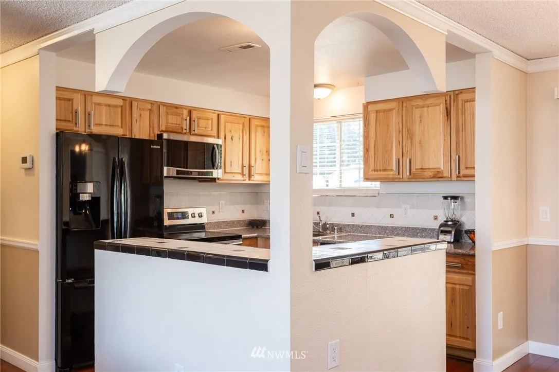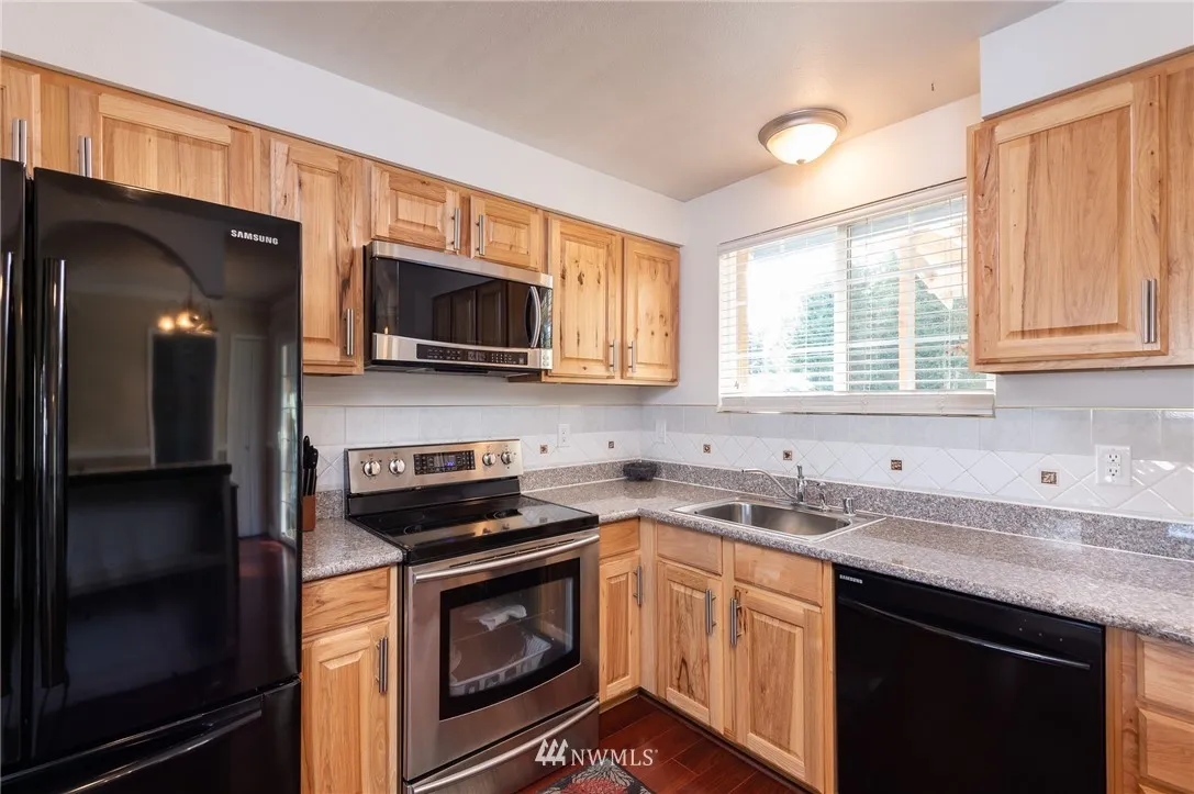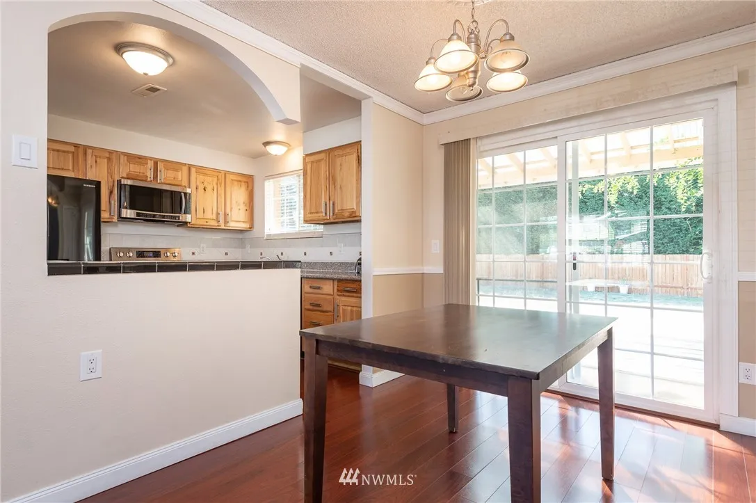 Absolutely adorable updated rambler in NE Tacoma. You will love the newly covered back patio with a ceiling fan and lighting. New fully fenced level backyard with lots of room to garden. Room for RV parking. Updated kitchen with appliances that will all stay. Kitchen/great room area w/wood burning fireplace. Newer windows thruout. There is a separate laundry room with W/D that will stay. Oversized garage that is super clean. Very quiet neighborhood with easy access to Tacoma & Federal Way.