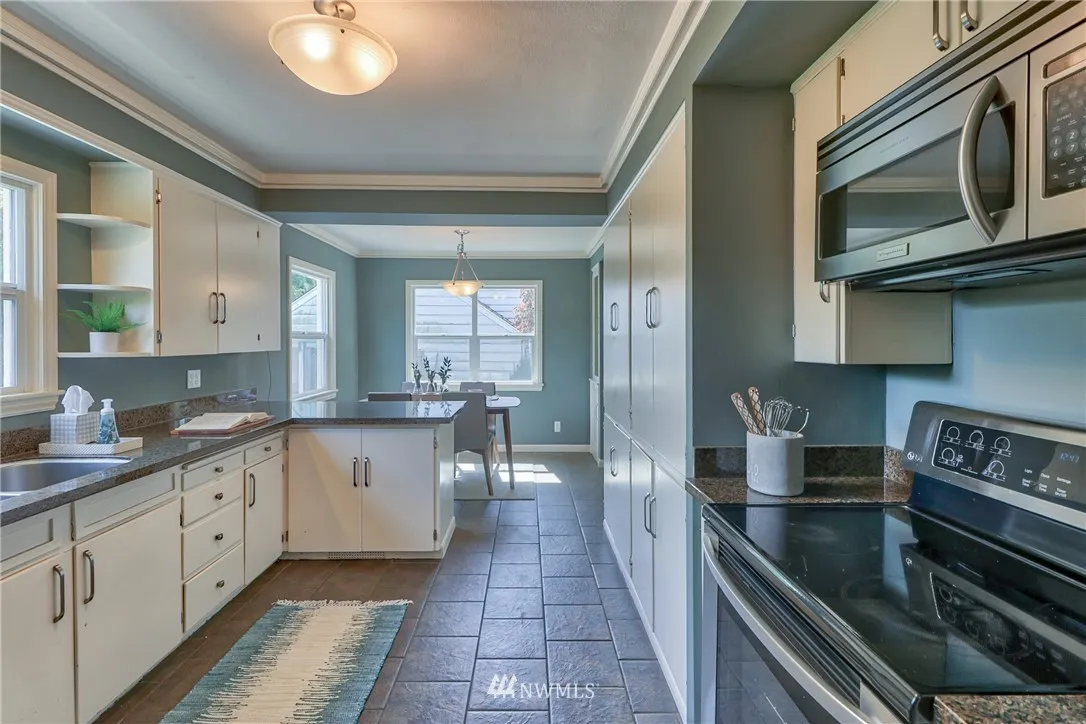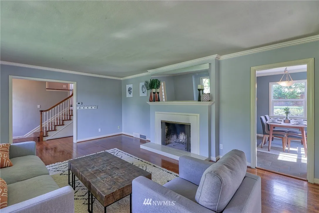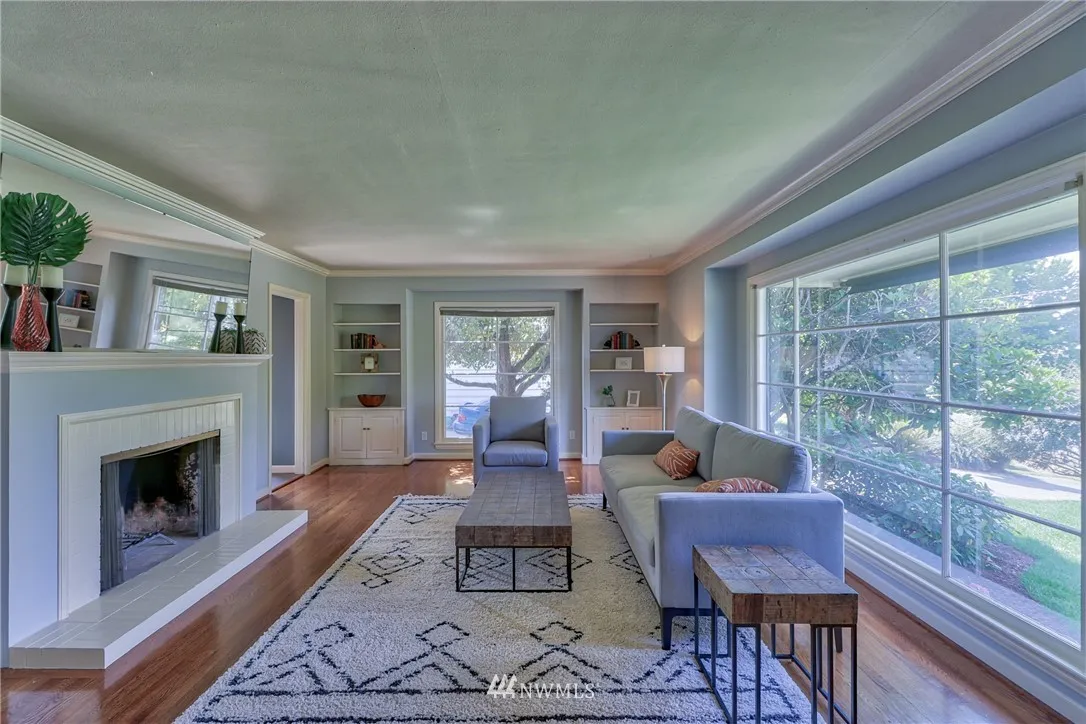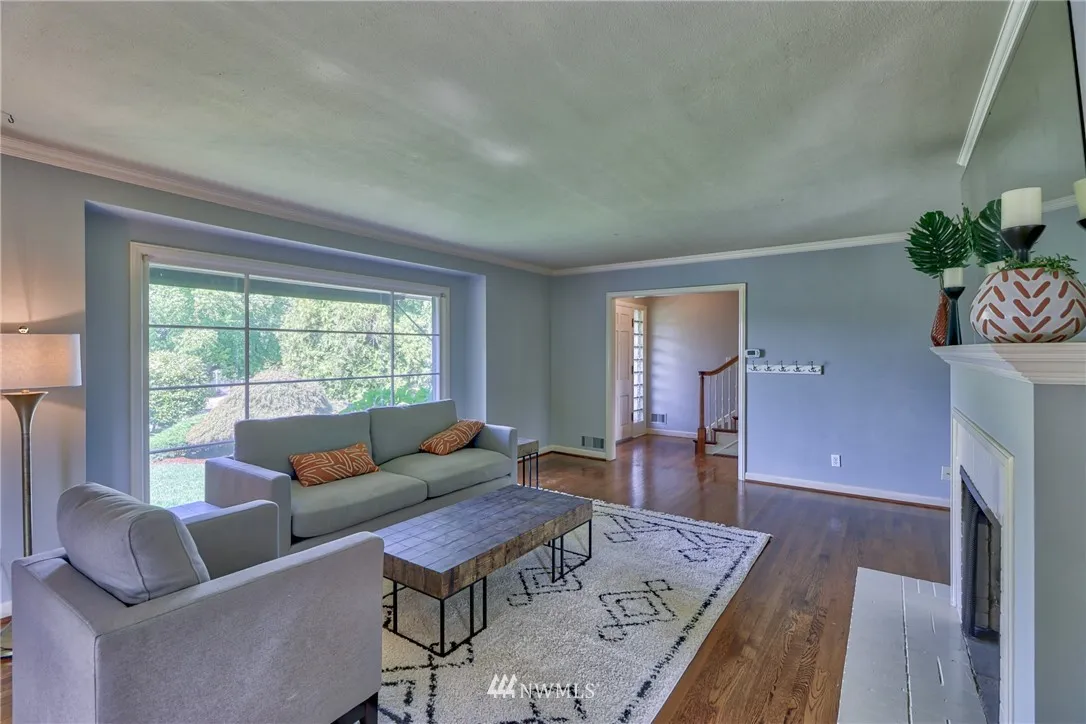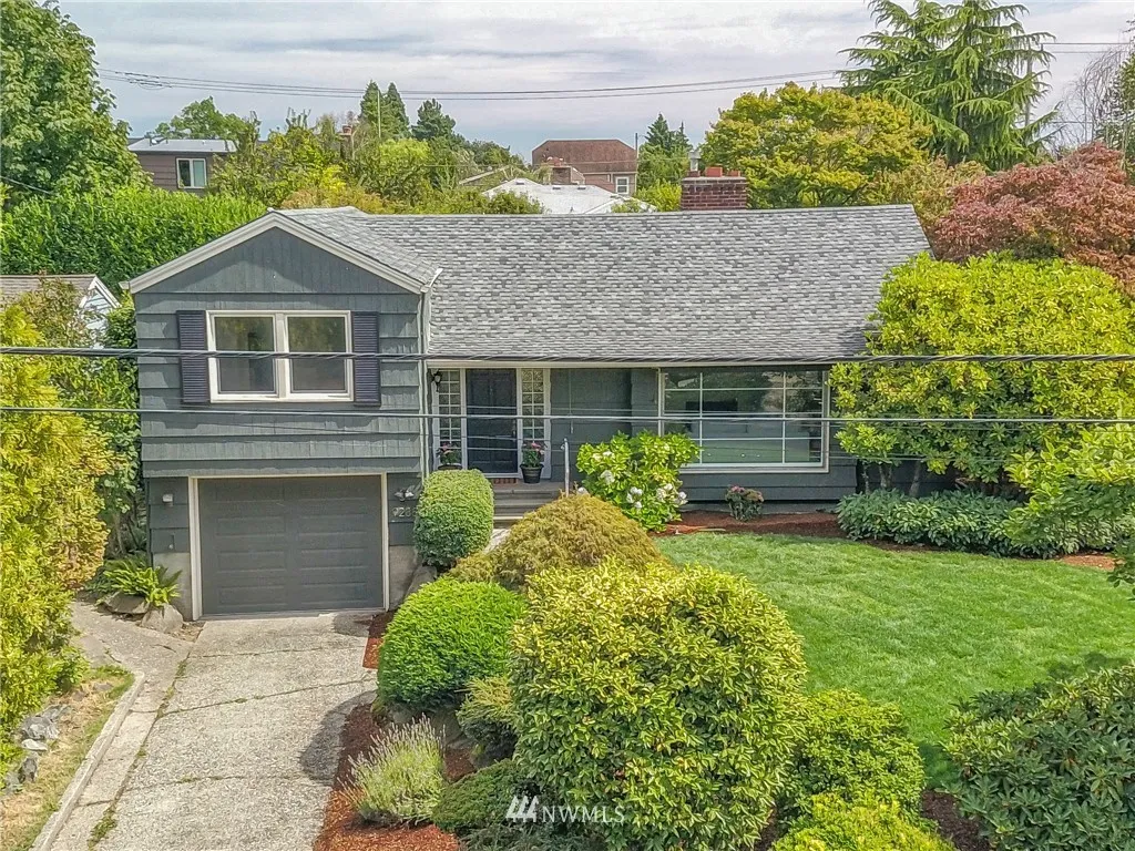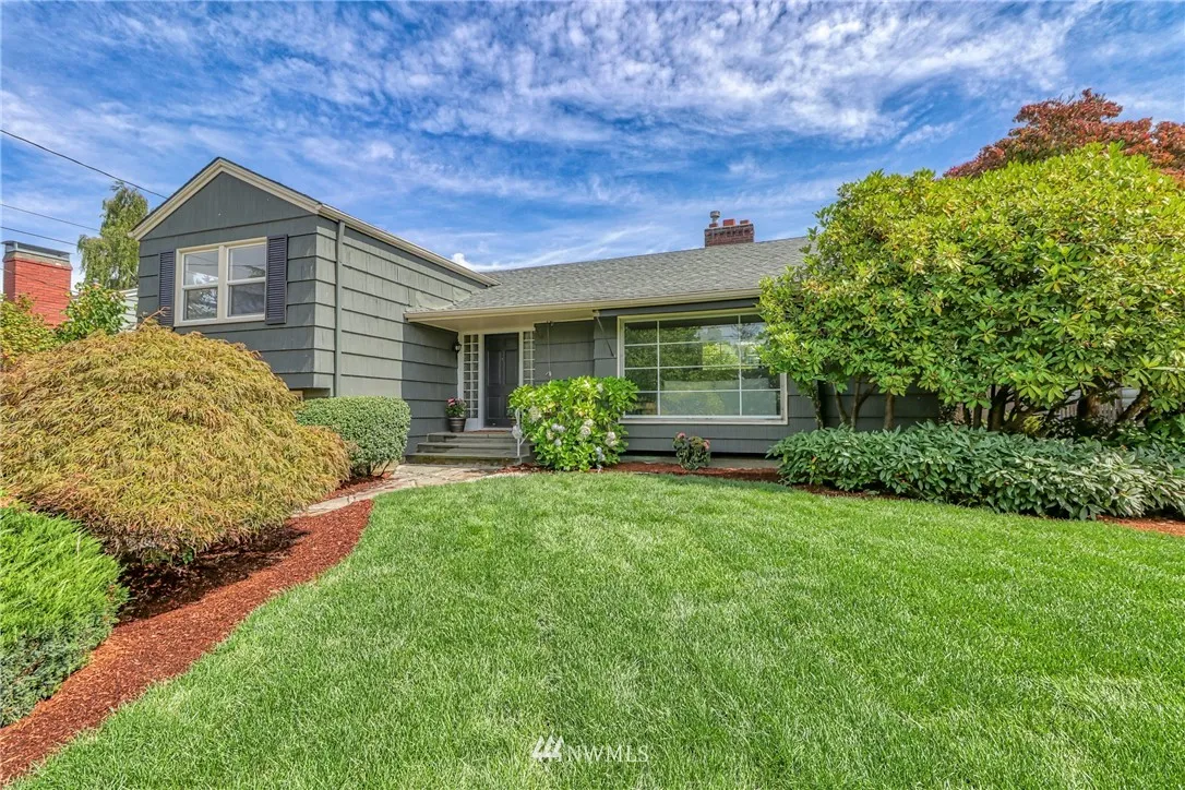 Come home to this ideally located, 3 BR, 1.75 BA Cape Cod on a generous, park-like lot. Living room and bedrooms boast beautiful golden oak floors. Oversized picture windows on the main open to sunsets and Olympic views. A fully finished basement with its own fireplace and loads of storage is spacious and versatile. Have room to both entertain guests and play lawn games in a grand and private backyard. Tucked away from city traffic but with easy access to downtown and 99.