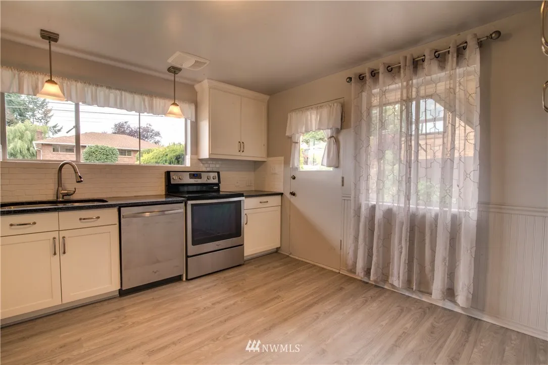 Lovely Brick View Home in Perfect West Seattle Neighborhood-Charming Spacious Daylight Rambler-Updated & Remodeled with New Fixture, Granite Counters, SS Appliances, Cabinets-Fresh Paint-Restored Hardwood Floors-Crown Molding-Laminate Floors-Downstairs has Bonus/Family Room, Workshop, Den/Office As well as additional bdr & Full bath-Private Level Backyard with Mature Landscaping-Extra Storage both Inside & Outside-Lots of Potential & Possibilities Here