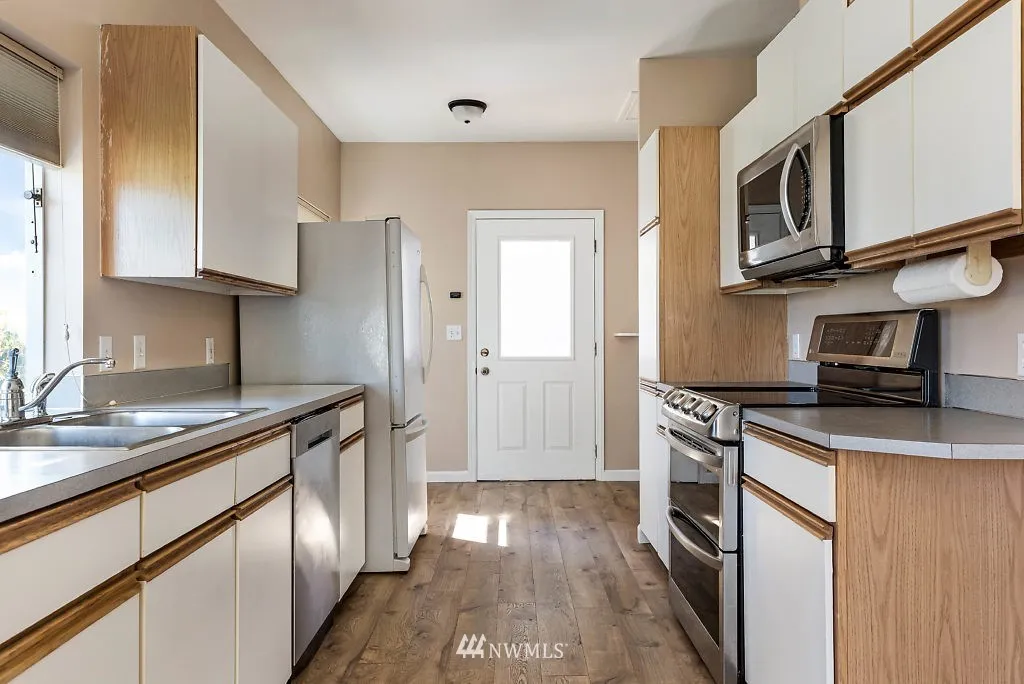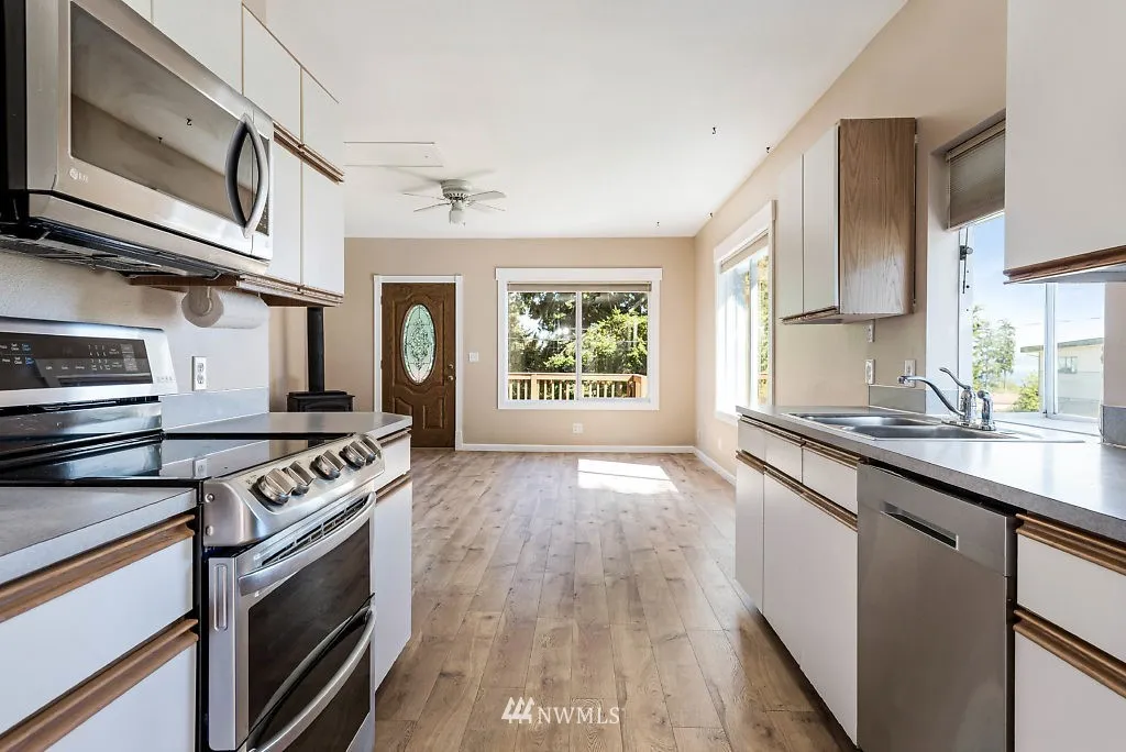 Updated cottage style home just shy of half acre and peak a boo view of the harbor. Located in city limits, close to shopping, parks and beach. 2 bedrooms and 1 full bath, great starter or vacation home. Detached garage with partially finished room renders many possibilities. Enjoy sitting on the deck while enjoying views of the harbor and Cascade Mountains. Don’t forget to check out the roomy attic space. Septic and Well have been inspected.
