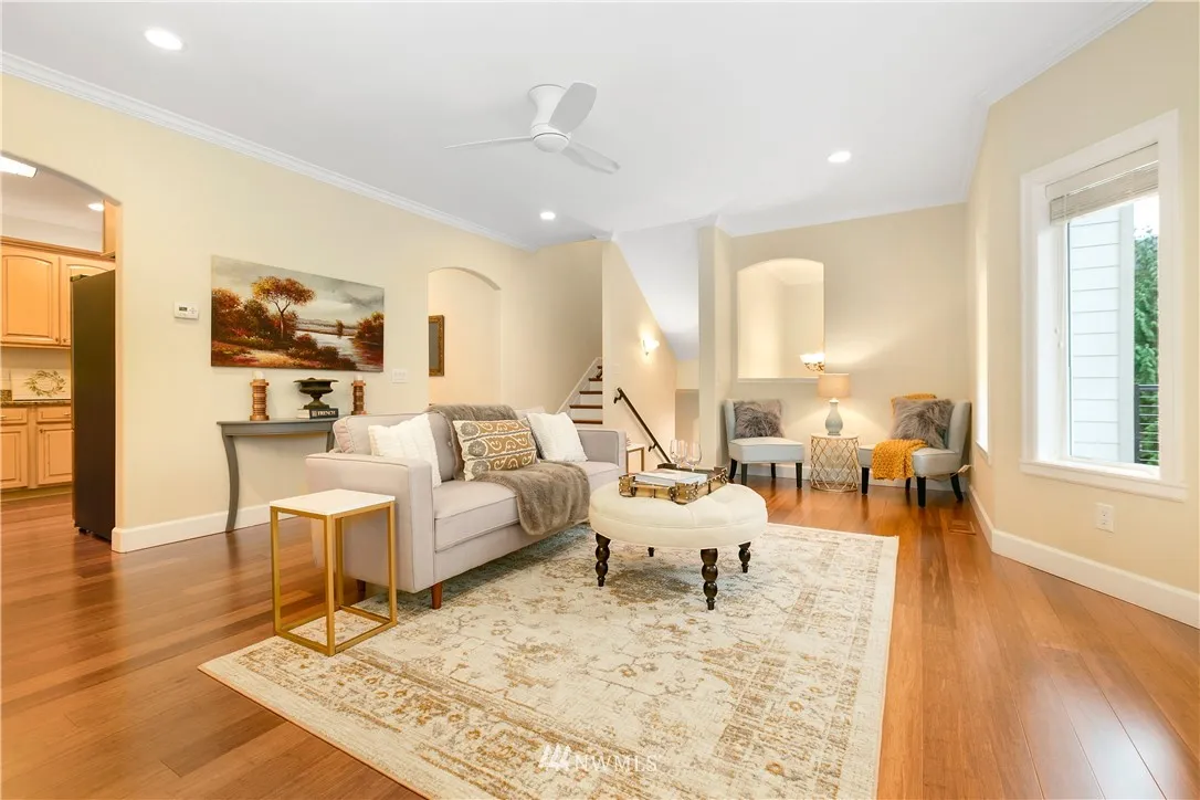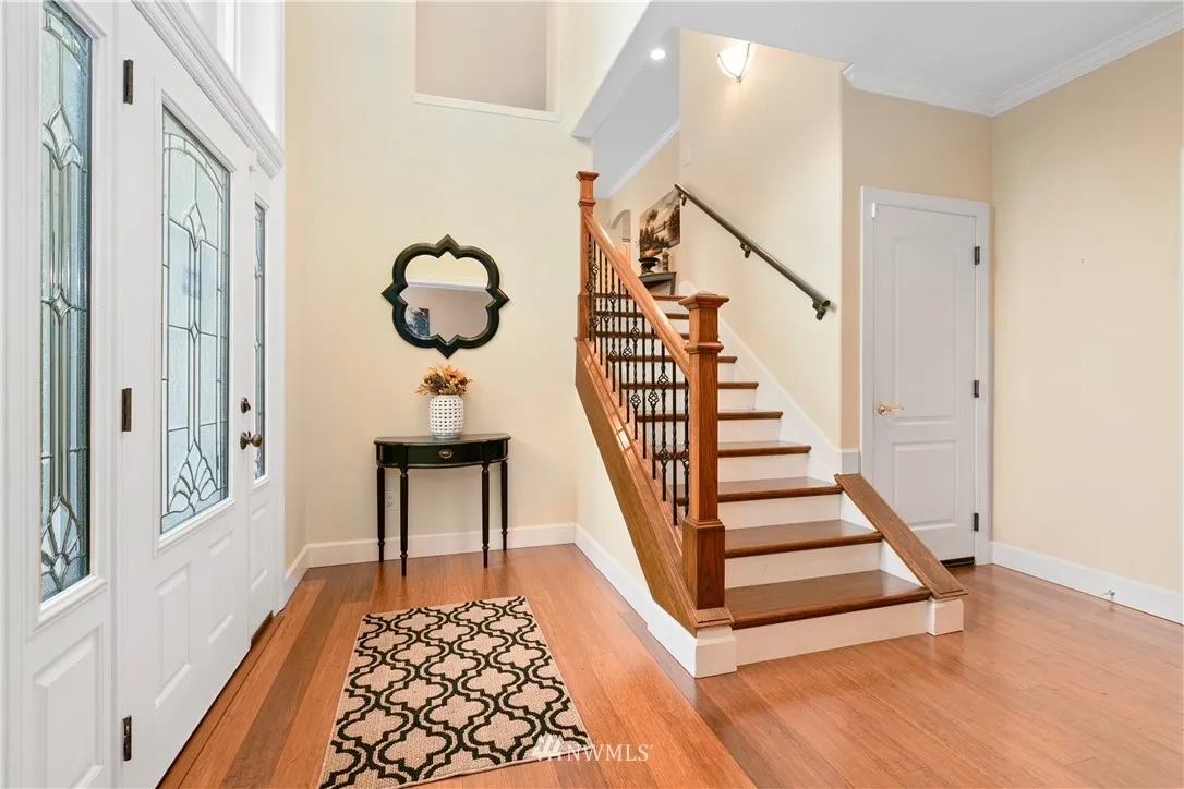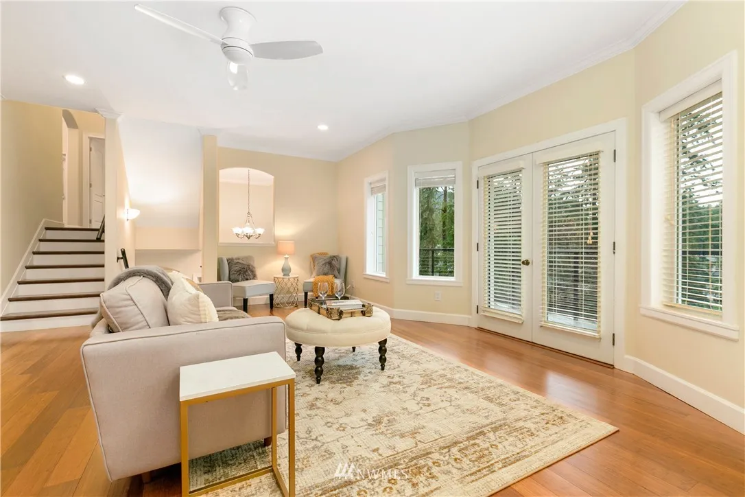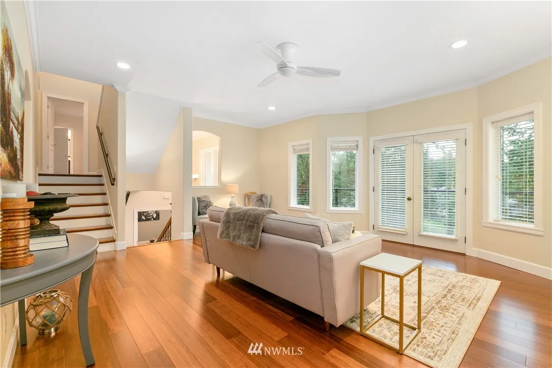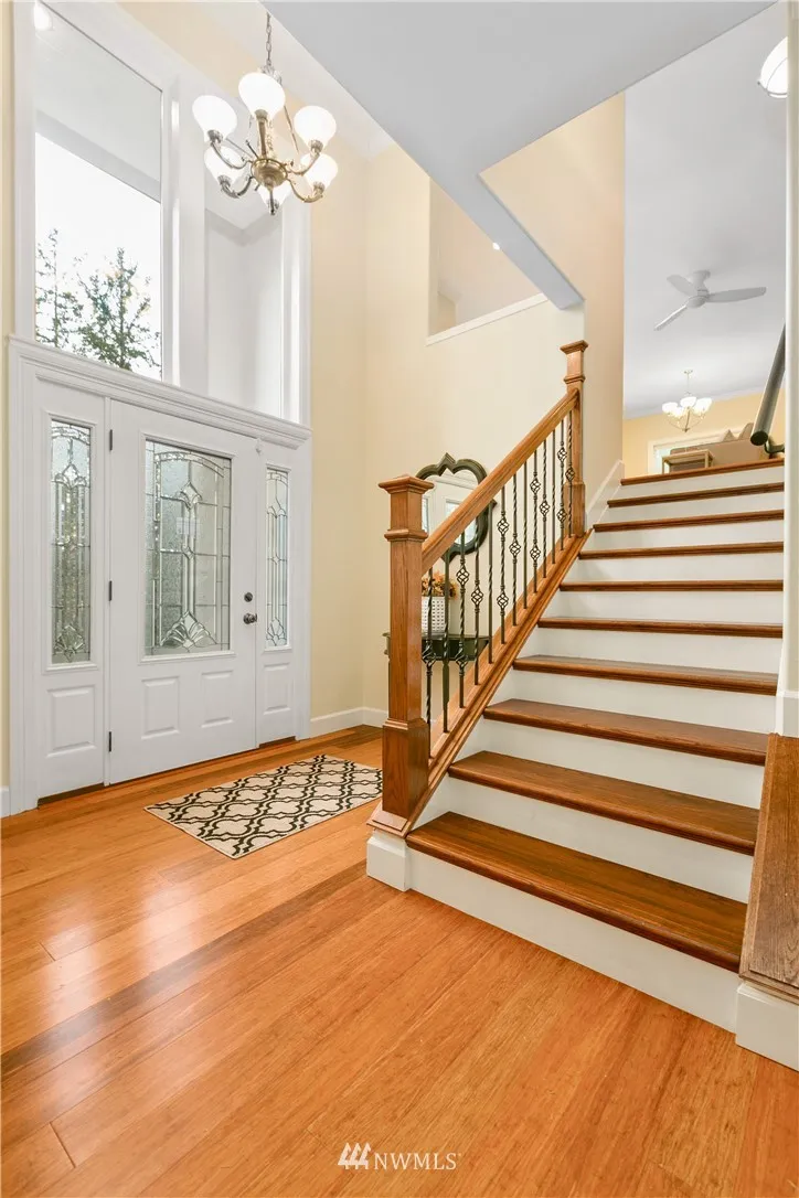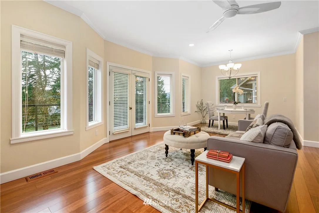 Upscale elegance & quality construction in this spectacular, sunny Sudden Valley home. Over 3,000 square feet! Bamboo floors, all new appliances. Entry level w/ office, 3/4 bath + laundry. Main floor w/ living, 2 dining areas & kitchen w/ pantry. Formal living w/ gas fireplace & master suite upstairs; 2 bedrooms (one w/ en-suite), loft, full bath & covered balcony on uppermost level. Backs up to greenbelt. Spacious balcony & partially covered deck. Walk to pools, gym, library, beaches & more!