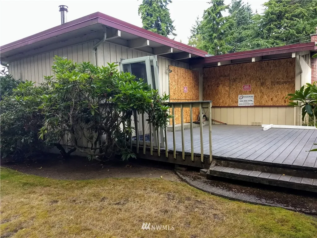 Investor alert! Fire damage property-Mid century modern home on almost half an acre with potential to rebuild or tear down and build your dream home. Open floor plan. Majority wood floors. Relaxing private wooded backyard with mature landscaping and deck off living room. Possible pan handle lot/duplex/MIL unit-Buyer to verify. Good comparable MLS#1495448