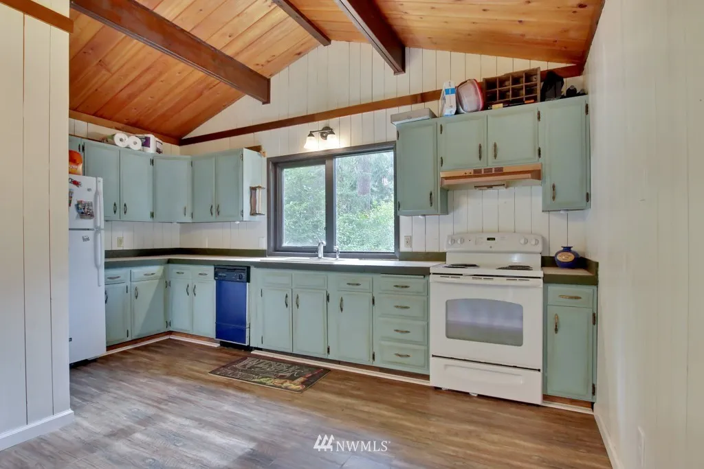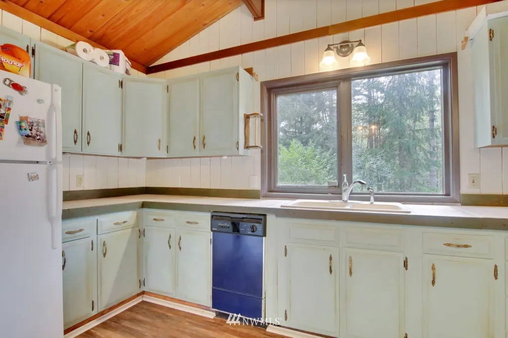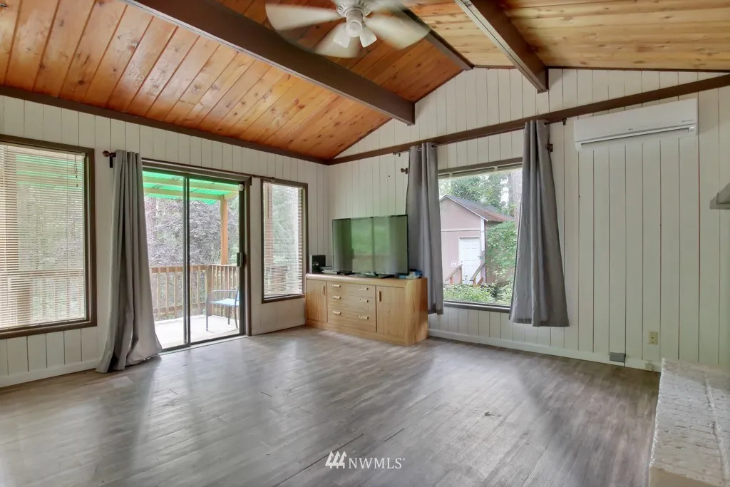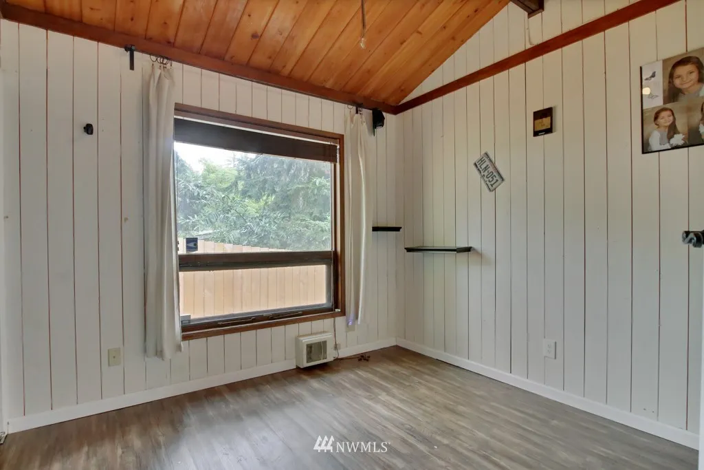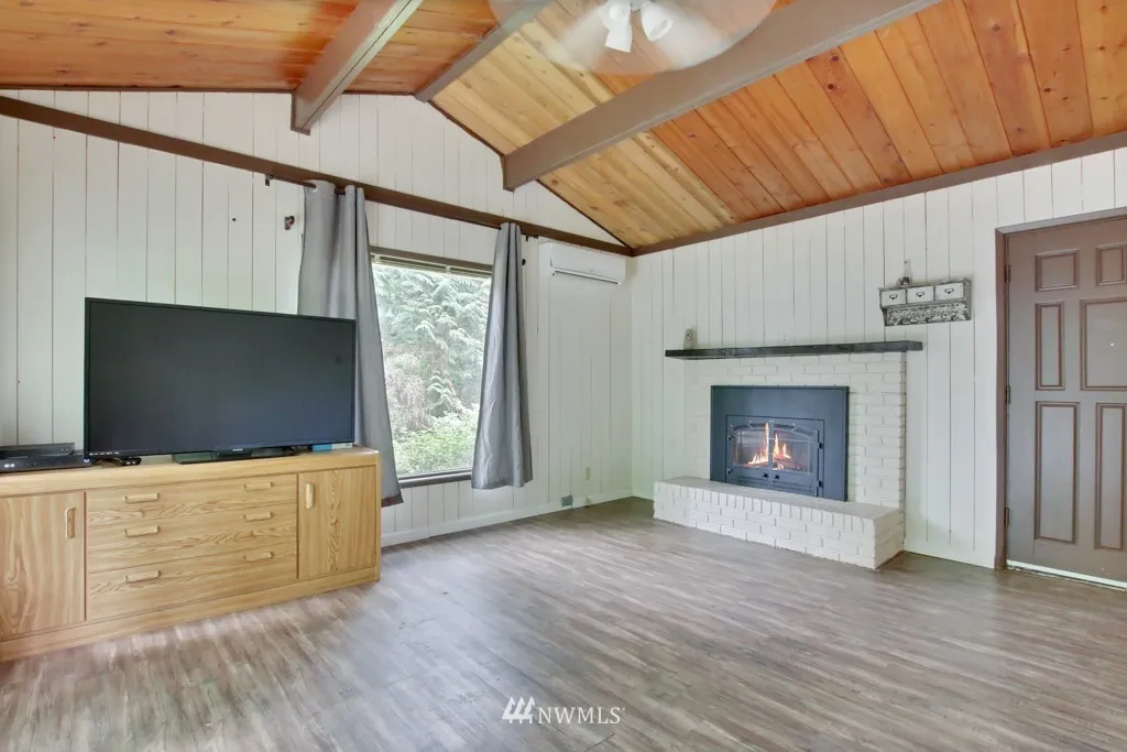 Welcome to this Charming 2 bed/1 bath home nestled on a quiet shy 1/2 acre lot! You will love the vaulted ceilings, large windows & A/C from the Ductless Mini Split. There's a cozy brick fireplace w/propane insert & propane hookup ready for a tank at the end of the driveway! Tongue & Groove Fir ceilings/walls, & laminate floors. Adorable eat in kitchen w/lots of cupboards. You get a detached office/work out space w/power, A/C & skylight. Secret playground at the back of the lot! What a gem!