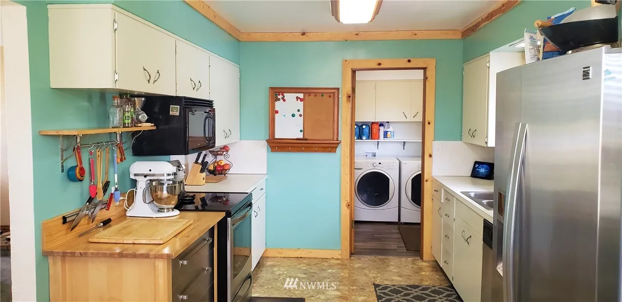 B I G Price Reduction. Commercial or residential use allowed. Plenty of parking 4 RV. Garage w/ shop, carport, patio. Fenced B.Y.. Well maintained & offers a newer 50 YEAR high wind class 4 ROOF. Kitchen w/ plenty of cabinets & counter space. Incl all appliances, convection oven. Remodeled bath w/ Jacuzzi tub & heated floors. Wood stove in Liv rm. Outbldg & Full attic has flooring for xtra storage space. Wired 4 generator. Dbl Pane windows, reinsulated/added insulation. Wood shed & garden shed.