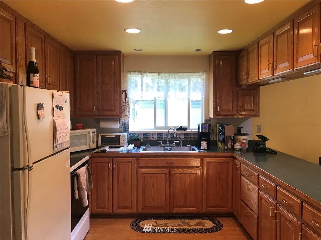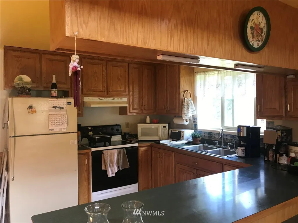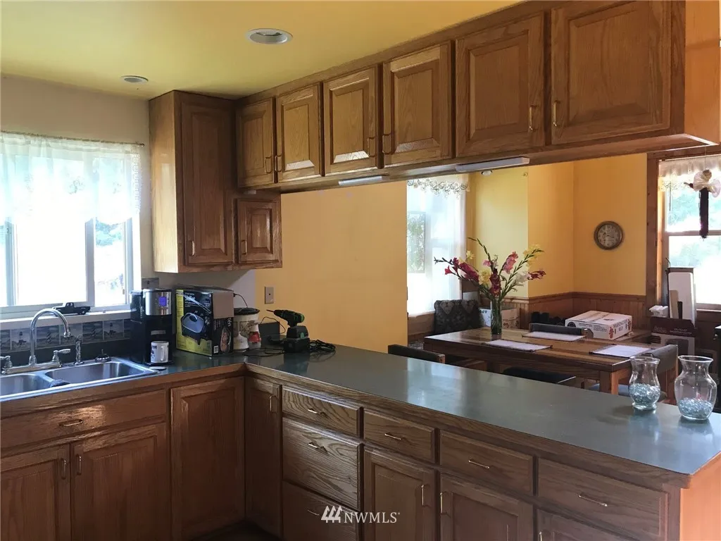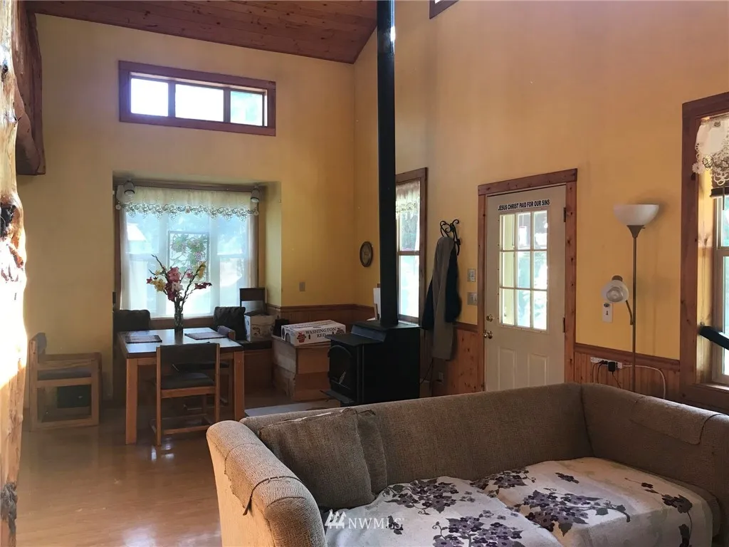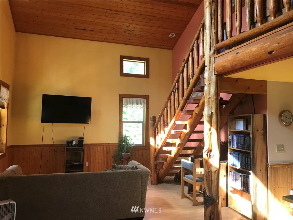 Beautiful custom cabin featuring hand hewed log staircase, vaulted ceilings, warm cozy wood stove, adorable custom kitchen & spacious private master suite w/private deck. Stroll through your mature garden with apple & cherry trees for your baking delight! But don't miss the huge 60x40 shop! With a 5 ton hoist & trolley & welded steel frame construction. You can park 6 "normal" cars or 1 massive log truck in here! Has a tool room & an office if you are looking to run your own truck business!