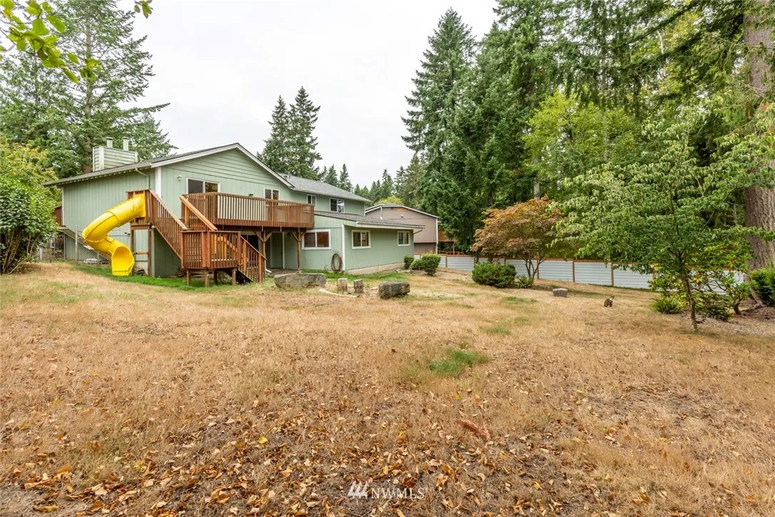 Fantastic Silverdale location! Located on a quiet circle, 3 miles to Silverdale new hospital, 3 miles to the Bangor Trident Base, on the PSNS bus line, and near the Silverdale dog park. Sits on a shy 1/3 acre . Home has newer decks, newer roof, and all double-paned windows. Very large home with potential mother-in-law suite. Vaulted ceilings with attached/heated 19 x 30 shop/bonus room. Economical natural gas heating. Home has an automatic power generator system.