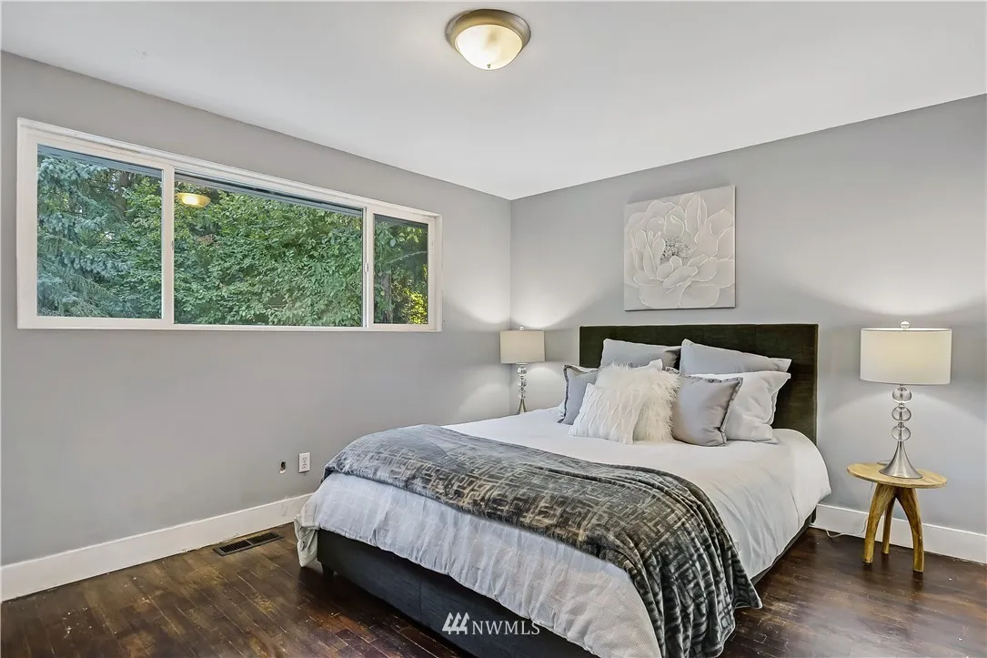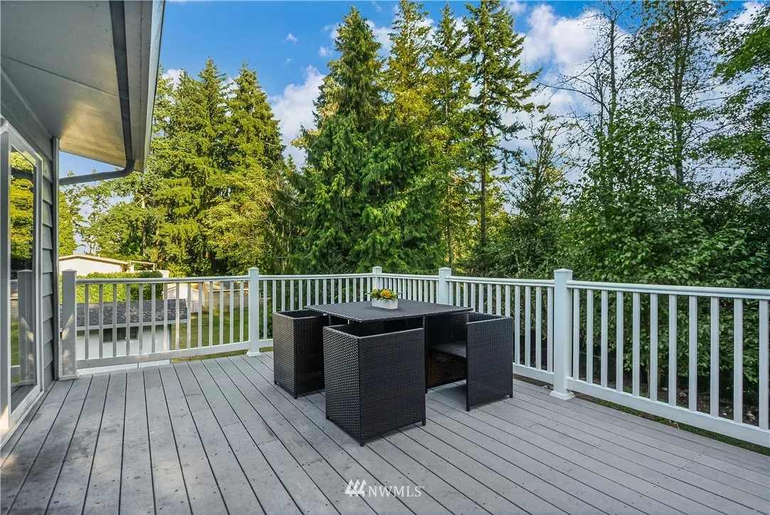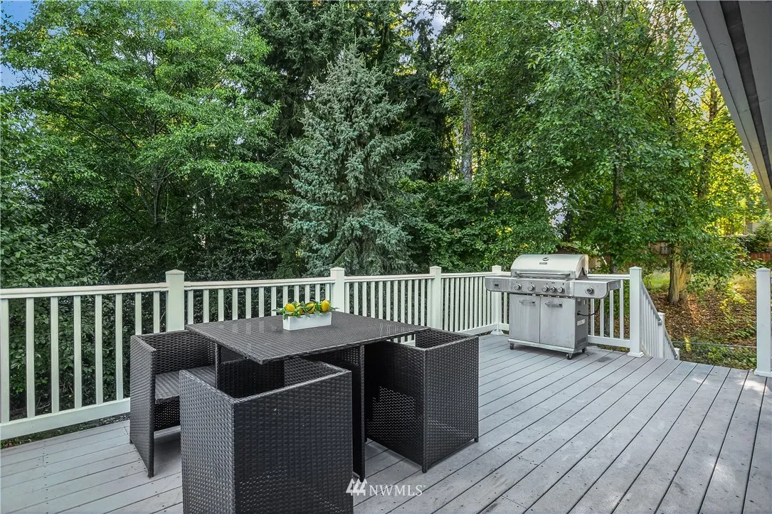 Don't miss this one! Spacious home on a huge lot in the highly desirable Northshore School District. Well designed floor plan. Move-in ready with plenty of opportunity to add your personal touches and make it your dream home. 3 beds, bath, living, dining, kitchen on the upper level open out to large deck overlooking the backyard. 2 beds, bath & huge rec room on the lower level with cozy fireplace, wet bar (2nd kitchen potential) & open to backyard. Minutes to the 405/522 interchange, amenities.