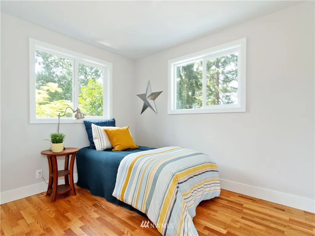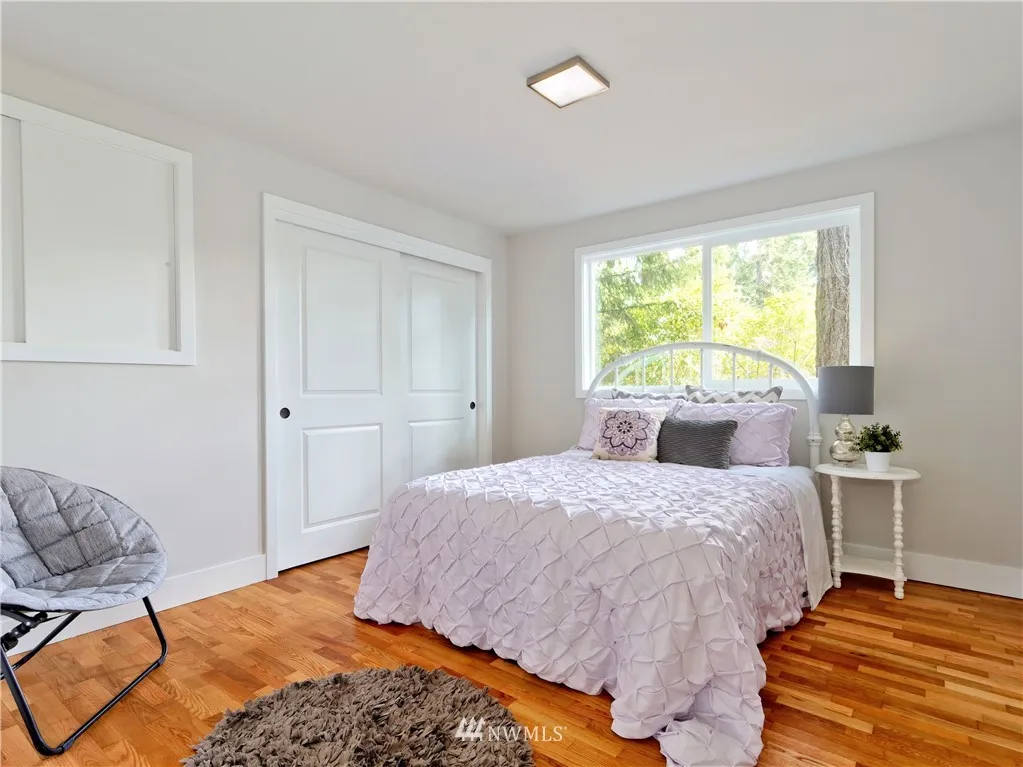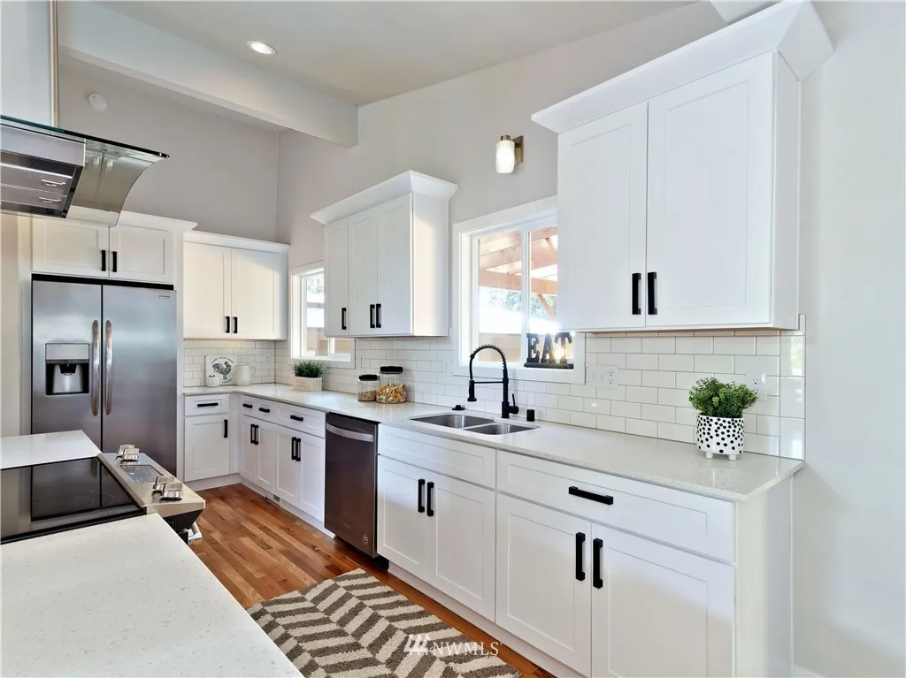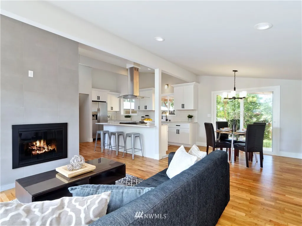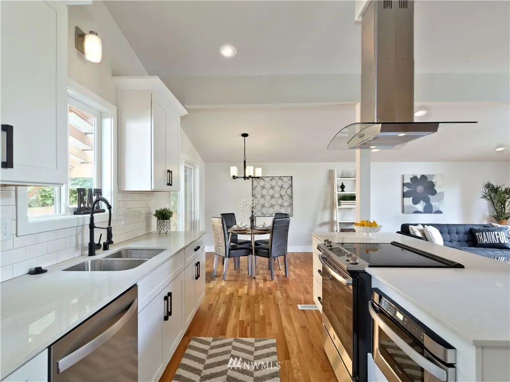Fully remodeled, mid-century modern architecture, vaulted ceilings and cozy fireplace in the open-concept living/dining/kitchen space, refinished hardwood floors, new shaker cabinetry, quartz countertops, new stainless steel appliances, 4 bedrooms including a spacious master with walk-in closet & ensuite bath, huge fully-fenced yard, covered deck will accommodate a hot tub, includes wiring & outdoor shower, oversized 2-bay garage with 3rd space for tandem parking or craft work shop.
