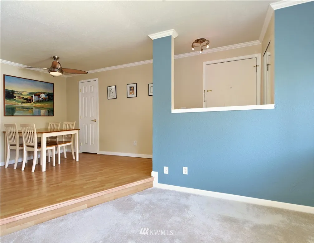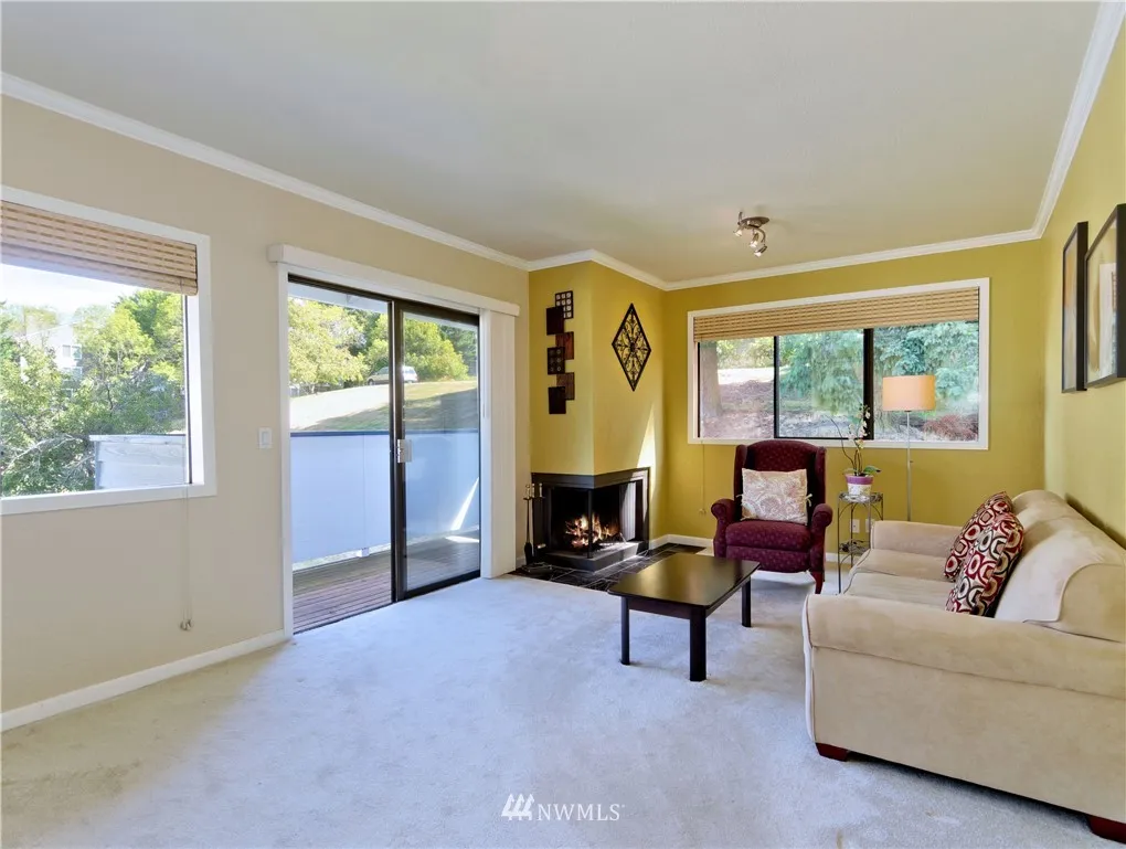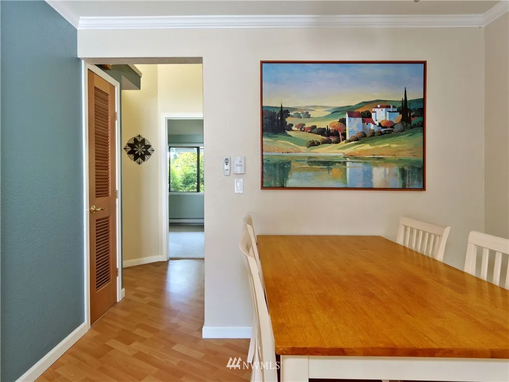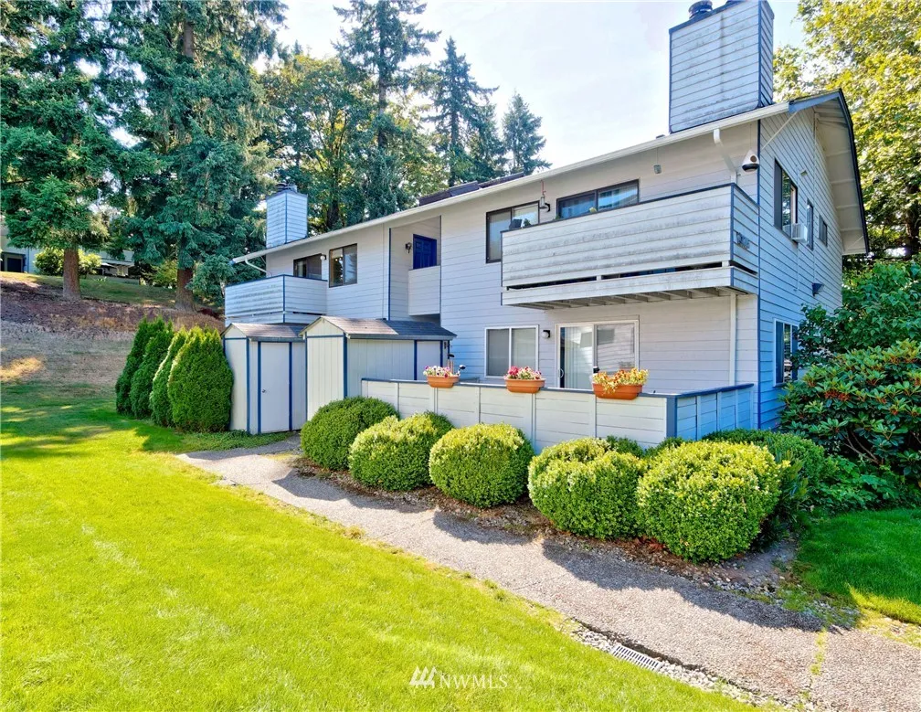 SUPER CLEAN TOP FLOOR END UNIT, remodeled 2006, 2 Bedroom 939 Sq Ft, spacious loft, private deck, fresh interior paint, Italian marble kitchen countertops, maple cabinets, vaulted ceilings, crown moulding accented by custom lighting, all appliances stay, new blinds, new hot H20 tank, HOA $255/M, 2 assigned parking, some visitors parking, GREAT LOCATION, mins walk to stores, Library, banks, daycare, restaurants, close to bus(#252,255,257), express bus to Seattle weekdays. Great schools.
