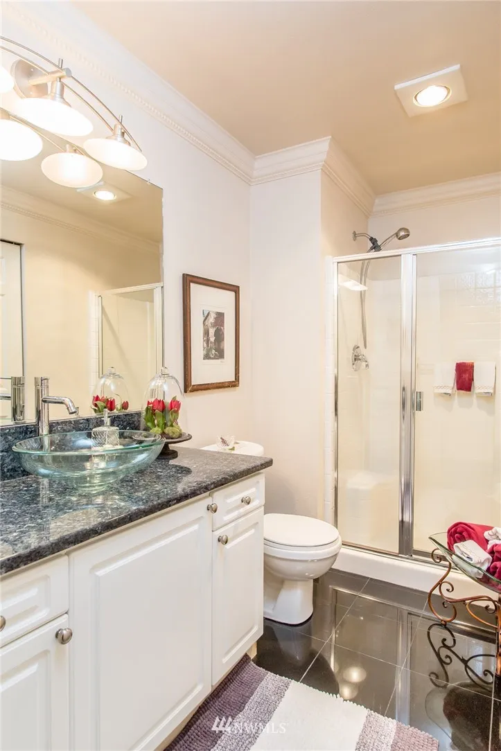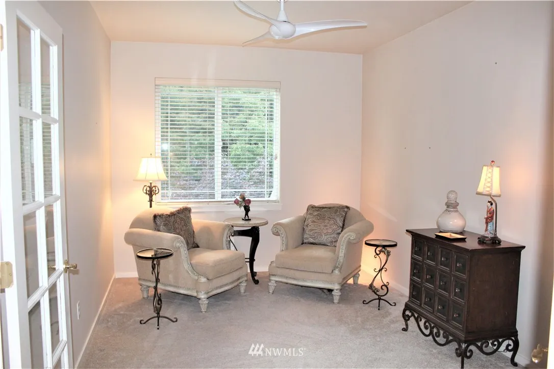 Beautiful condo in great location. Come home to a spacious well-lit, open floor plan. Gorgeous french doors opening to the 3rd bedroom, perfect for office space. Beautiful built-in glass cabinet doors and gas fireplace. Entertain from your open concept living area that flows seamlessly to your private balcony. Updated guest bath w/granite counters. Classy Master w/5 piece en-suite bath/walk-in closet. Keep frost away this winter with your spacious 2 car garage! Close to trails and town center!