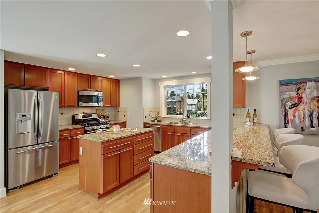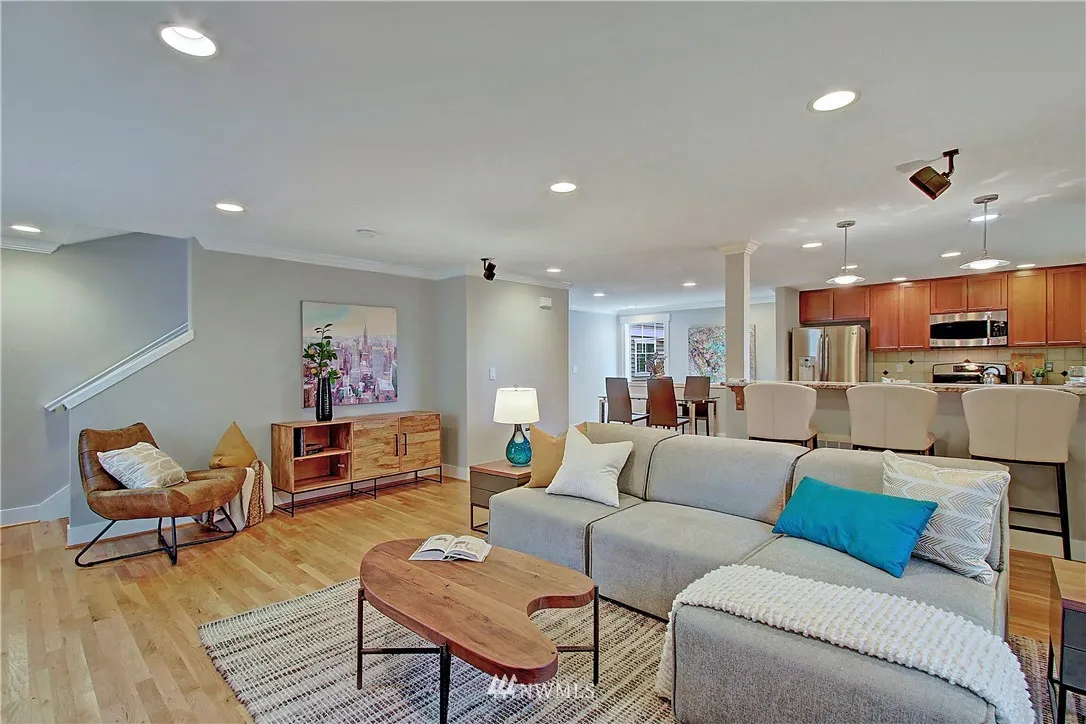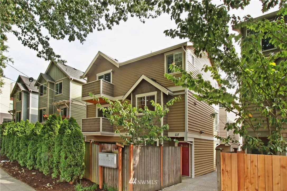 Stand-alone townhouse in the heart of Ballard. Desirable floorpan feature a generous kitchen, dining space and living room with a cozy gas fireplace. Extraordinary 3 bedrooms 2 bathrooms up include a master suite, vaulted ceilings and hardwood floors. Newer mini split heating and cooling system, laundry plumbed on the bedroom and lower floors for potential to have two washer and dryers. Fresh paint and carpet make this home "move in ready." Two car attached garage, close to bus lines.