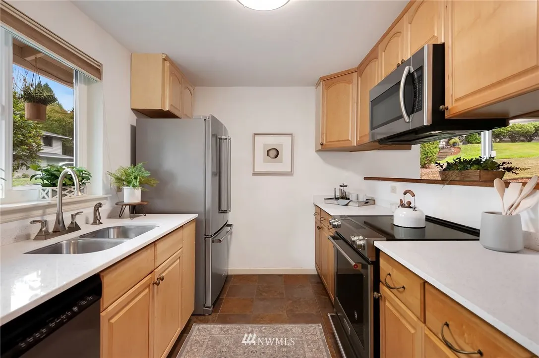 New Price!! Rambler style townhouse truly lives more like a single family home without the yard maintenance. This 2 bedroom, 1.75 bath home is freshly painted with new granite countertop, Kitchen Aid refrigerator & oven/range, and new light fixtures. It is truly a one of a kind home in a very desirable and convenient location situated minutes away from shopping, dining, and entertainment. Located across the street from Microsoft, 520, Overlake Transit Center, and the new light rail.