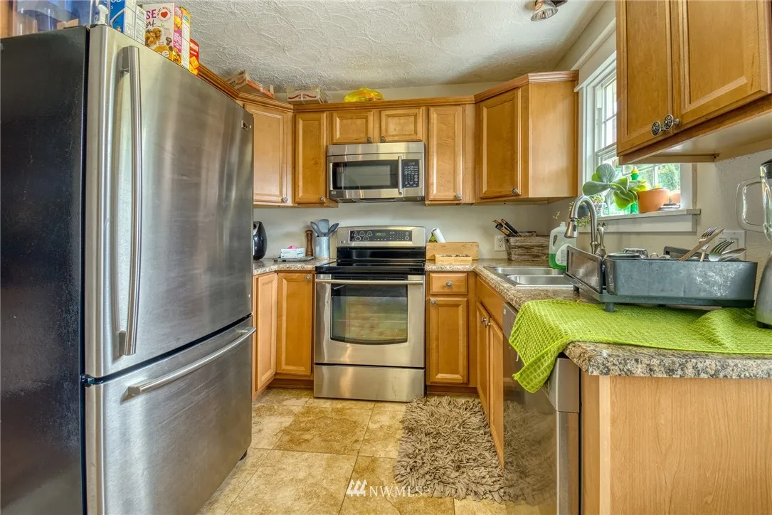 Updated 2 bedroom, 1 bathroom home on a 16,553 square foot lot in a beautiful location. Vinyl windows, updated kitchen and fixtures, tile flooring and bath surround, separate utility room with all appliances staying, living room and a large family room with a wood insert fireplace. The property is level with room and access to build a shop. Plenty of covered parking spaces!