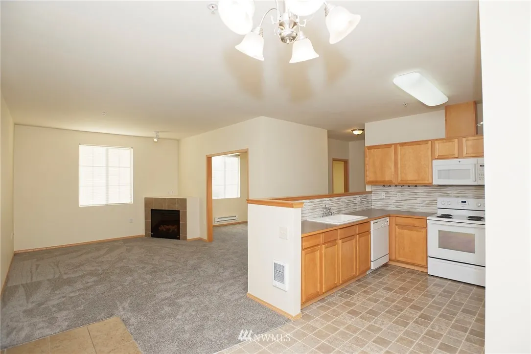 2 Bdrm 2 Bth Condo 2nd floor top floor in gated community. Open concept living great for socializing.Fully applianced kitchen w brand new microwave glass tile back splash,lots of cabinets w/pantry & nook w a balcony off it.Lrg living w electric FP open to den/dining room w extra shelves.Guest room & full size large bathroom. Your Master Suite/Bth offers a walk in closet,balcony,double sinks w shower. Carport,clubhouse w/amenities,close to shopping. Brand new carpet throughout & freshly painted.