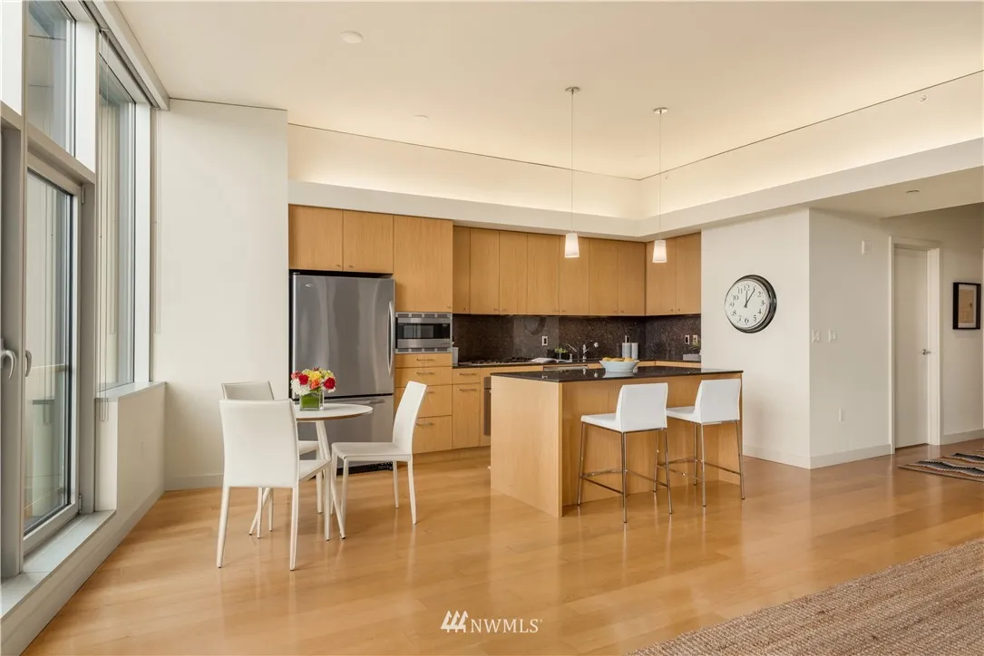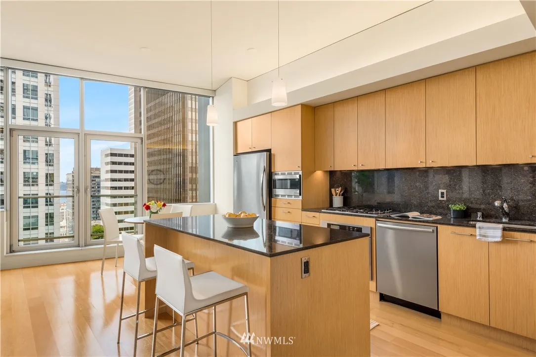 Situated in the heart of downtown Seattle, this stunning west-facing condo offers the finest in metropolitan living. With high ceilings & wall to wall windows, it offers ample light & generous views of both city & green space, and with its clean contemporary design & fine finishes, it provides comfort & luxury alongside its open and airy aesthetic. Whether enjoying the morning light or watching twilight settle over the city from the balcony, this condo offers the finest in downtown living.