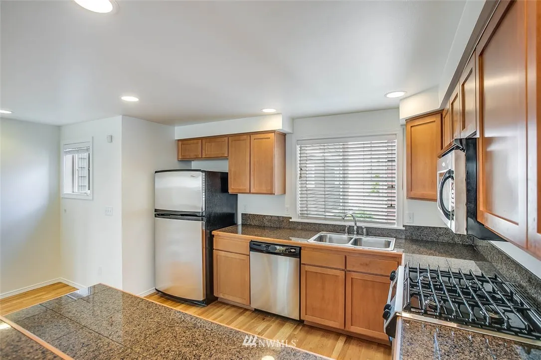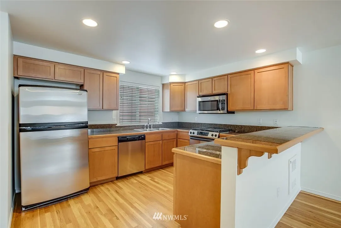 Beautiful 3 bedroom town home walking distance to Green Lake. Spacious kitchen with granite tile, stainless steel appliances, and a breakfast bar. Main floor great room with hardwood floors, deck and a cozy gas fireplace. Newer carpet and fresh interior paint. Attached 1 car garage & fully fenced yard. Easy I-5 and Hwy 99 access. Walk to shops, restaurants, parks, and all that Green Lake offers. No HOA!