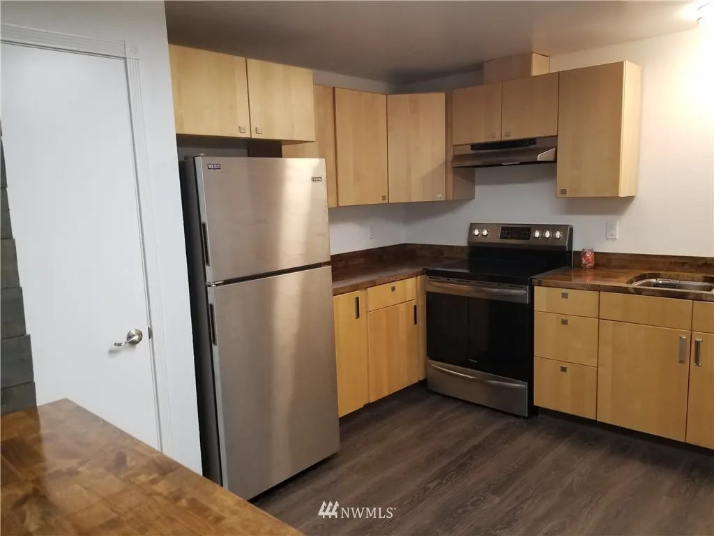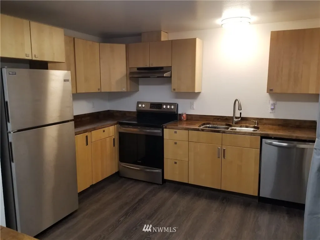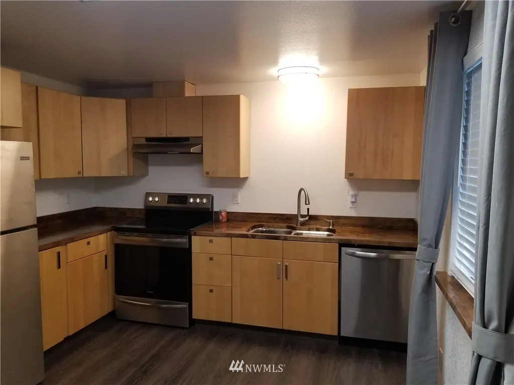 What a deal, beautifully updated unit in a small, 6 unit community. Ground floor unit with a patio and a backyard, spacious, and bright, open kitchen with tons of cabinets and dark walnut butcher block counters, new laminate throughout, updated bathroom with Rainfall whirlpool tub. HOA covers common area and lawn maintenance, water, sewer and garbage. Quiet street and conveniently located close to hwy 512. Pets have a 40lb weight limit.
