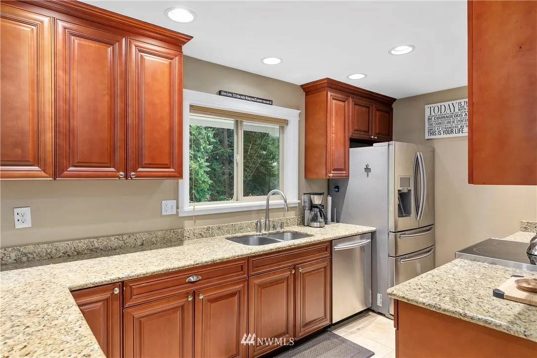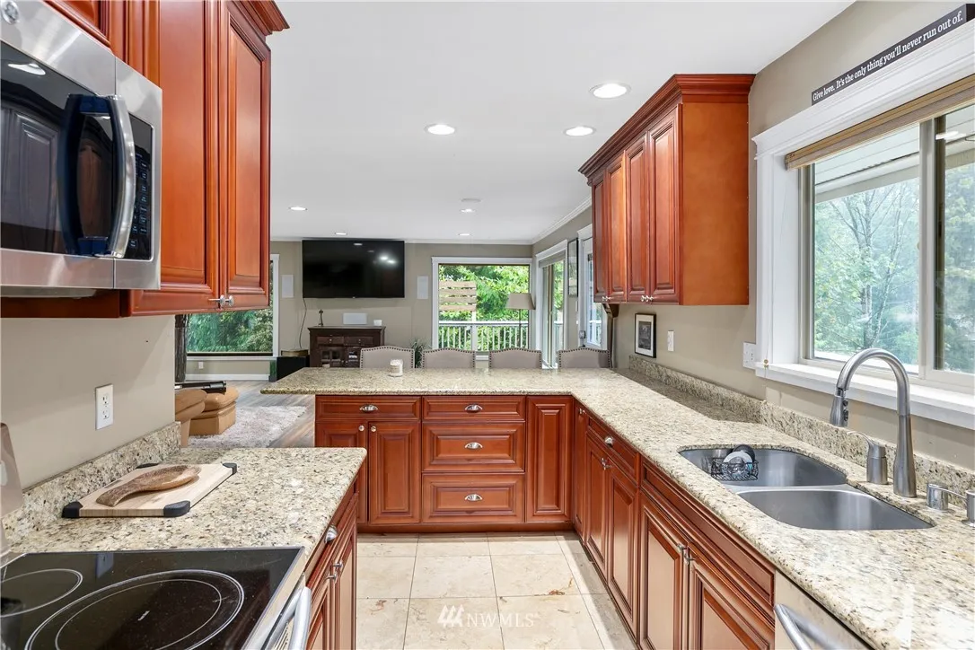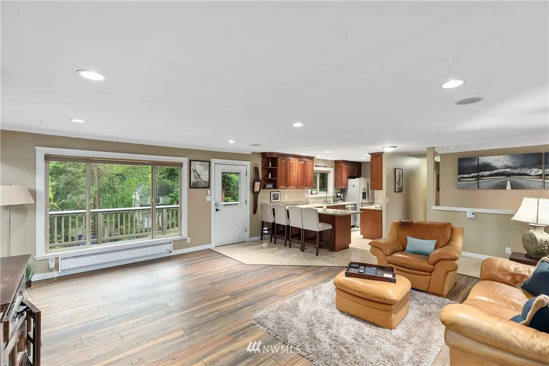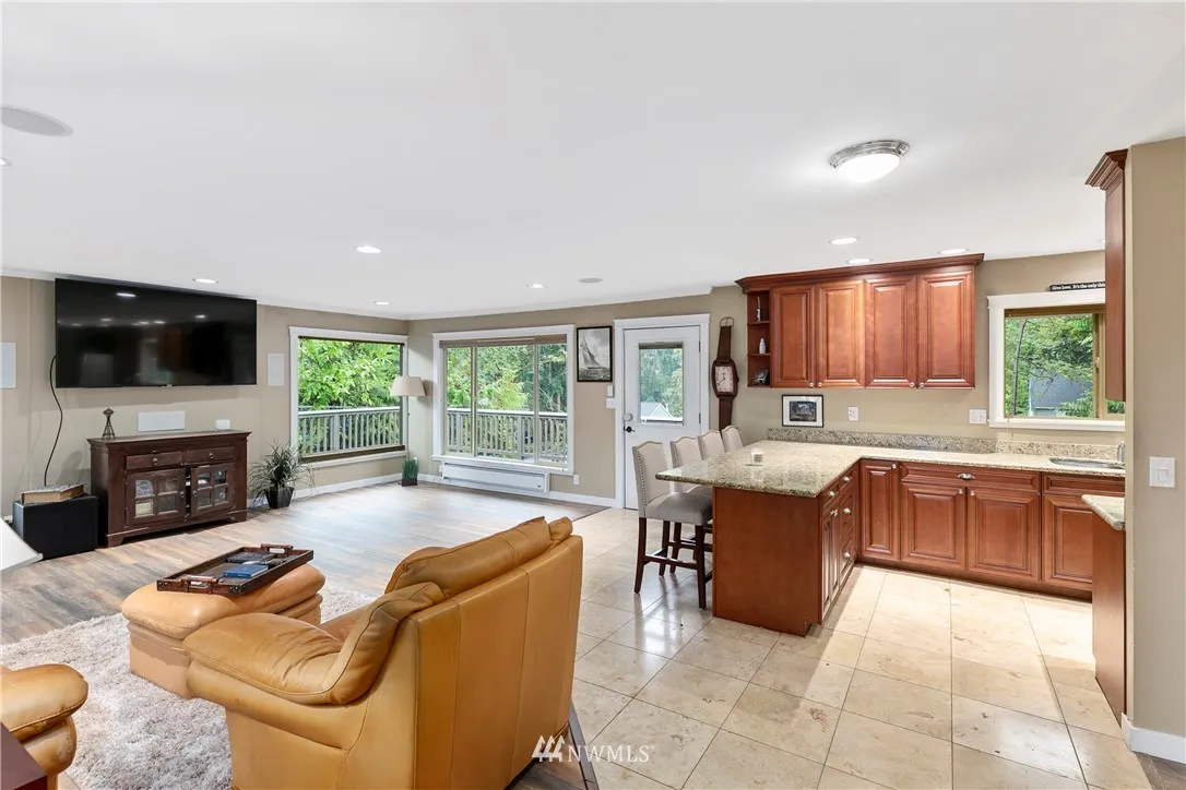 Updated home on sought after Rose Hill featuring full apartment downstairs with separate entrance! Upstairs features 2BR, updated BA, new flooring & modern kitchen using granite, slate & stainless steel. Bright, open floor plan leads to huge deck that invites entertaining! Full apartment downstairs with 2BR, updated 3/4 BA, full kitchen & stainless steel appliances. Great floor plan & opens to beautiful backyard. Minutes to Microsoft, downtown Kirkland or Redmond. Perfect for Airbnb or rental!