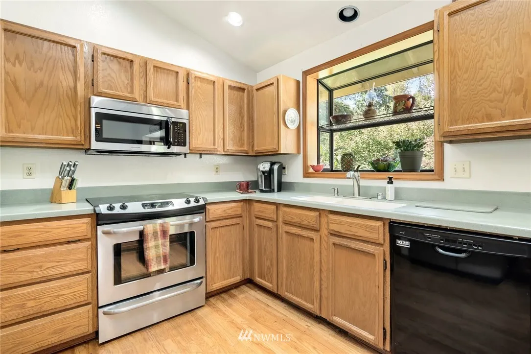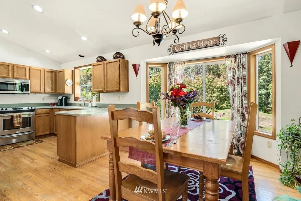 Enjoy the peace & quiet of a country setting but minutes to town. This 3 bed/2.25 bath home is situated on 1 acre & offers room for your toys/hobbies in the 30'x36' shop w/concrete floor, mezzanine & 12' door. Freshly painted interior brightens the open floor plan w/kitchen that includes SS appl, pantry & hardwood floor. Step down to family room w/access to large Trex deck w/room to entertain. NEW roof, gutters AND water heater. Wired for generator. Short commute to Eastside employers. MUST SEE!