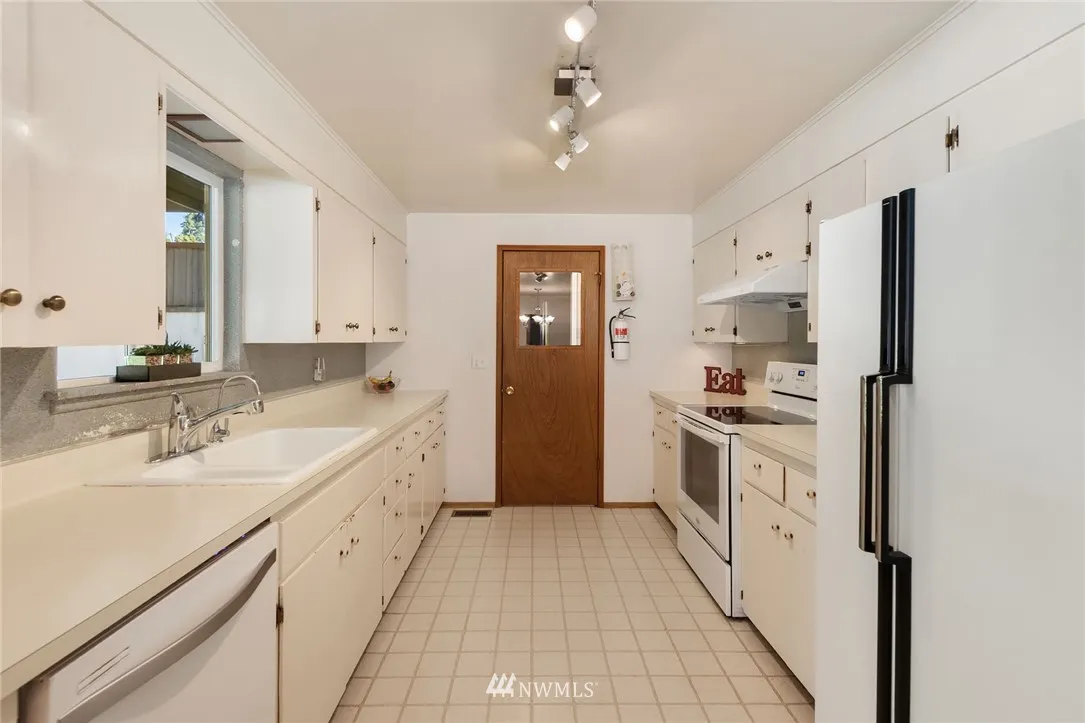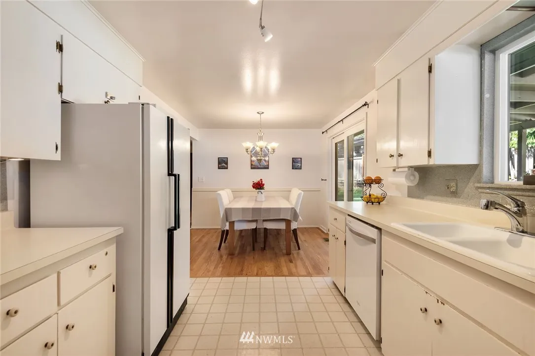 Charming Rambler in Lynnwood! 3 BR, 1.75 BA, 1404 Sqft. Living RM w/gorgeous hardwood floors & wood burning fireplace! Kitchen features eating area, smooth surface cooktop, tons of cupboard/counter space. Hardwood flooring thru LR, Hall, Dining & BRs. FR [with door] that could easily be used as 4th BR [3/4 BA in this area too!].. would make a perfect MIL. Lg, fully fenced yard w/raised garden bed. Covered deck *PLUS* giant patio that doubles as a great entertainment! Lots of Parking space.