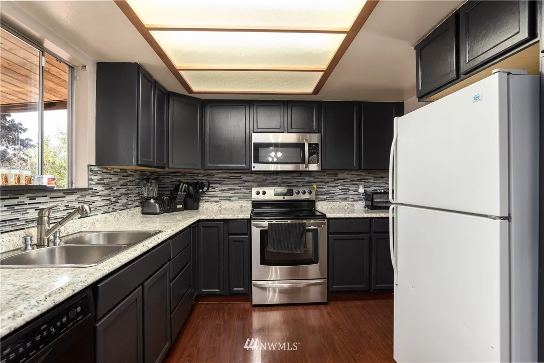 Beautifully updated and landscaped home on extra large private lot in a great Mount Vernon location! This home features a kitchen with stainless appliances, granite counters & tile back splash, a large .37 acre lot with private fully fenced backyard, covered deck, two car garage with room for workbench, outbuilding for additional storage, graveled & fenced RV parking, nearly-new high efficiency gas furnace, wood fireplace insert & much more!