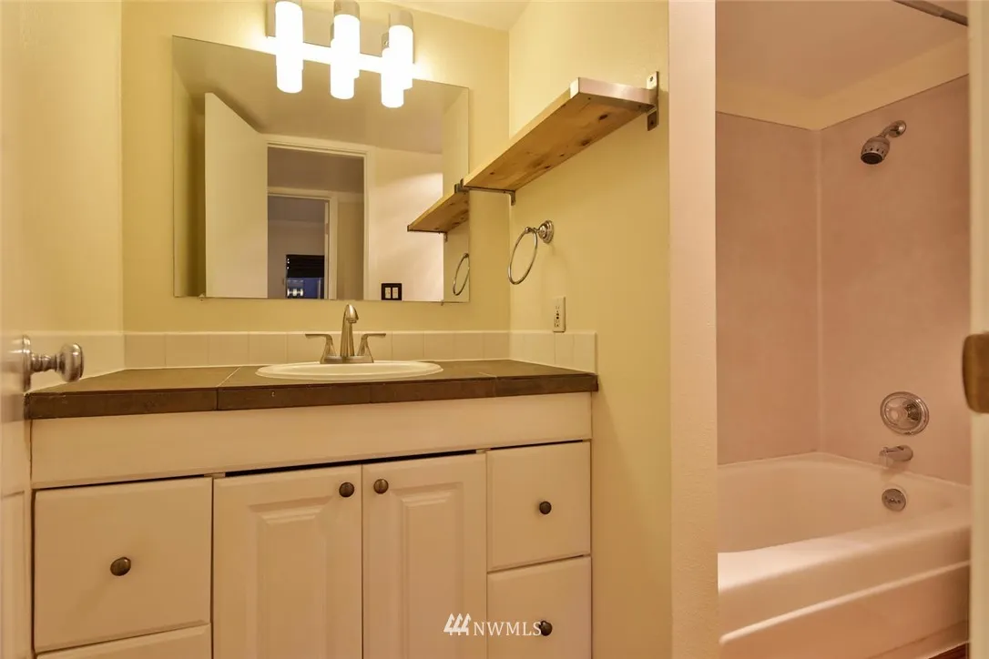 Comfortable 2BR/1.75BA condo with private Garden, assigned parking, and storage locker! Updates include NEW interior paint and carpets/vinyl floor, newer hot water tank and in-unit washer/dryer ! Sunny and spacious Living Room connects to Dining Room overlooking charming outdoors Garden with Patio. Master Suite has ensuite BA. Secured building with attached Garage, convenient location: Easy access to I-5, Renton, and SeaTac, walk to schools, library, shops and eats!