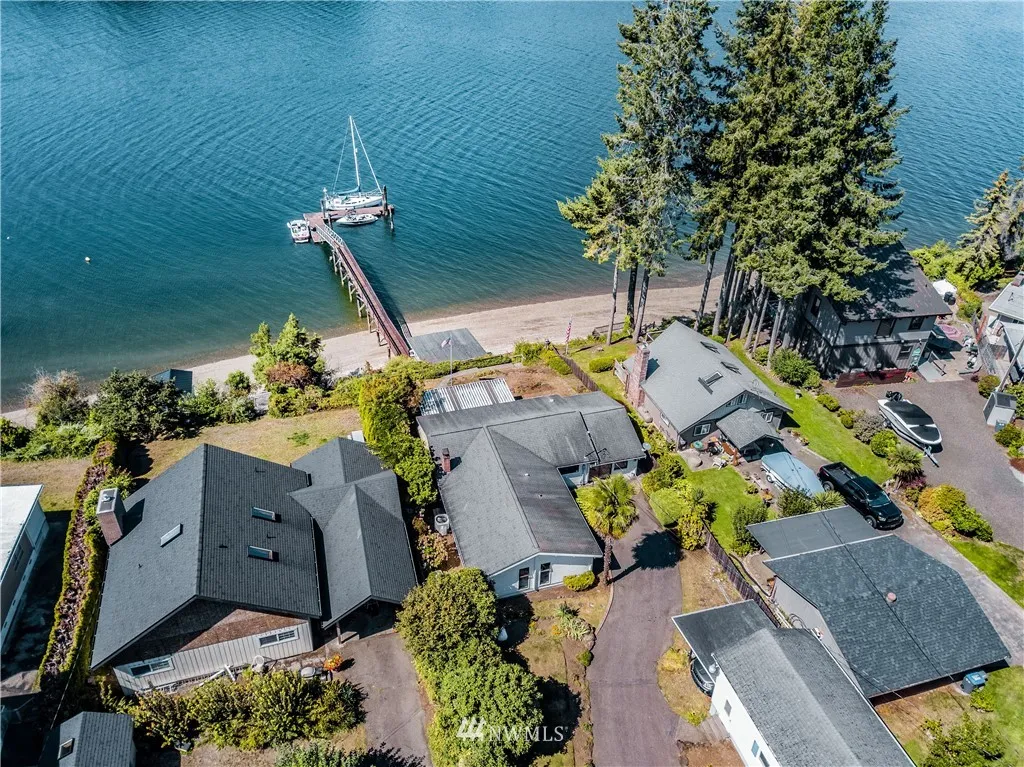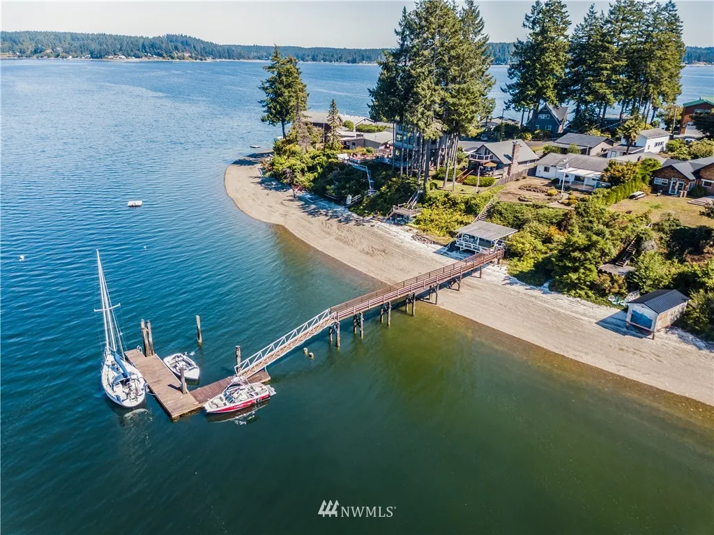 WATER FRONT with MOORAGE!!! your own private dock on Treasure Island in South Puget Sound. 1900 sq ft Cedar Pan Abode home, 3 Bed plus den, 1 and 1/2 bath, Fireplace in the living room, A/C Heat Pump and a Generator that starts up automatically if the power ever go's out. The owner use to have his 66 foot Purse Seine fishing boat moored at the dock. And a Cabana just on the beach perfect for the beach party. This is one of the best beaches on TI. Great for swimming, boating and clam digging.