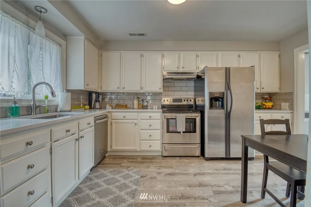 Looking for a stylish new place to call home? Look no further! This freshly remodelled 3 bedroom home in Longview's desirable Olympic neighbourhood is move in ready with some serious bells and whistles. New flooring, paint, stainless appliances, new kitchen remodel with GORGEOUS finish! Large fully fenced back yard with deck, garden space and alley access. Home is located just a short walk to the lake and is a short gaunt to Vancouver/Portland. Seller is offering Home Warranty with sale.