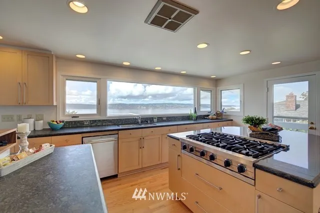 Forever breathtaking views of the Sound, Olympic Mountains, & stunning sunsets. A rare chance to own in Olympus Terrace a tucked away peaceful community. Fabulously updated 3400 Sq.Ft. home. Open concept living with a wall of view windows living room to the kitchen. Gourmet kitchen with 2 center islands-premium appliances, granite counters, & maple cabinetry. Oak flooring. A grand master suite with views. 800 Sq.Ft. view deck/17,000 Sq.Ft. property w/beautiful landscaping. A Premium location.