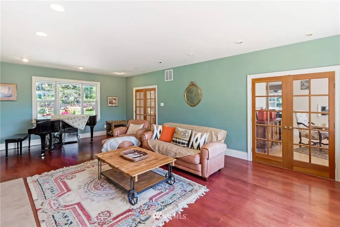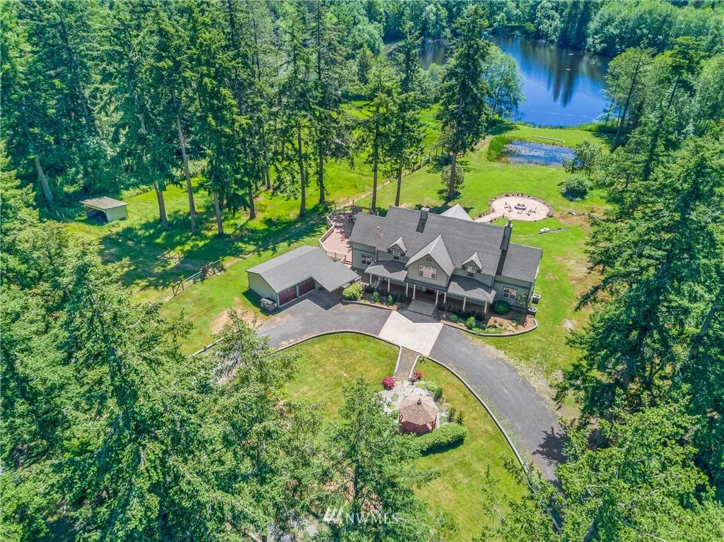 This magnificent home is located on five lakefront acres just minutes from the Town of Friday Harbor on beautiful San Juan Island. Over 5,000 square feet w/ five bedrooms, three baths, three living rooms and expansive out door decking for entertaining overlooking the sunny southern views to the lake. There multiple garages and outbuildings as well as fenced pastures/dog run areas and shelter for livestock. The property has a vacation rental permit and some creative financing may be available.