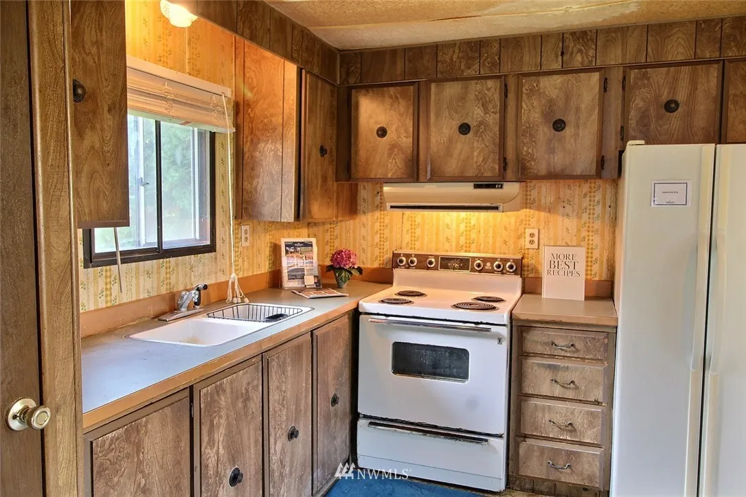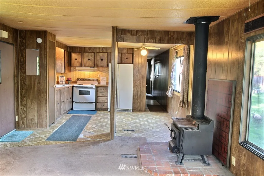 Beautiful setting with views and PRIVATE RIVER RIGHTS. Two bed and one updated bath. Home has a nice sized living room with wood burning stove, eat in kitchen & laundry. Appliances stay. Nearby amenities includes: Cedar River, golfing, pool, community center, ball fields, trails, Starbucks and commerce. Easy access to: 405 & 167, Boeing, The Landing, Highlands, Fairwood, Maple Valley. Award Winning Tahoma SD. Private river access. Selling AS-IS, Value in the land. Fantastic income opportunity.
