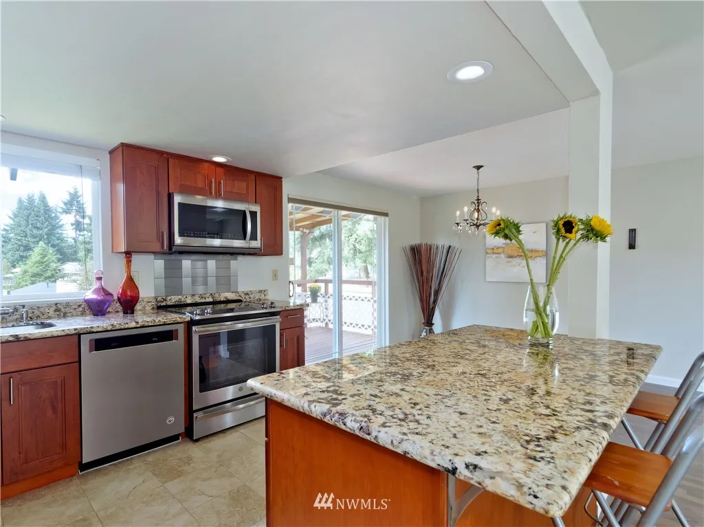 Price just reduced ! Well maintained home by original owners in Juanita . 3 BR , 2 BA , 1 car garage +RV/boat covered parking . New roof , newly refinished hardwoods, remodeled kitchen with SS appliances , slab granite countertops , Hunter Douglas smart shades , Heat pump/AC, nice yard. Lake WA schools . Best location : walk to newly updated Keller Elementary , Edith Moulton park , shopping , close to the Village at Totem lake , Juanita beach ,downtown of Kirkland , I-405 .Home pre-inspected.