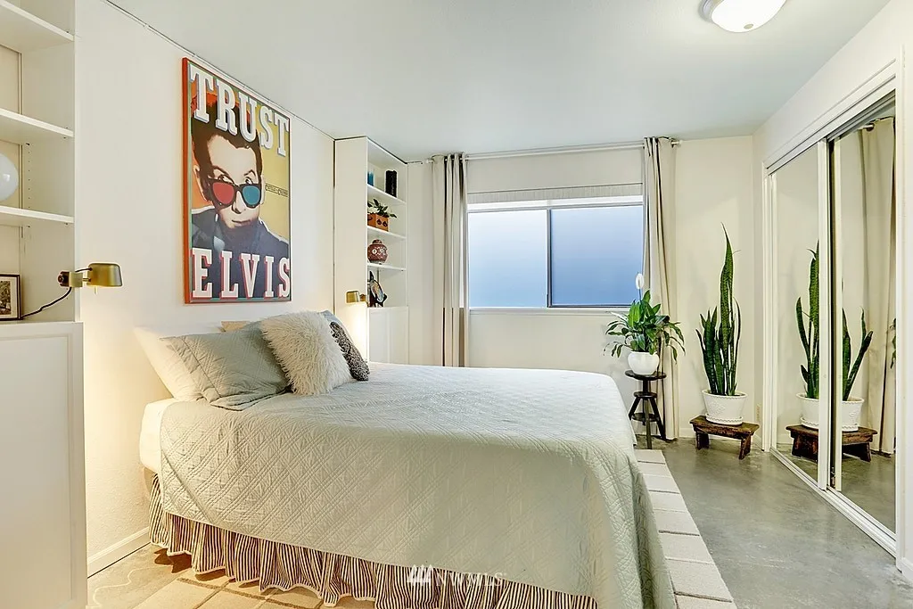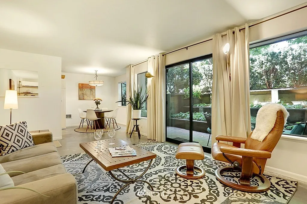 $11,000 price correction! Remodeled 1-level condo with handicap access! This great unit features polished concrete floors, new mini-split for A/C, kitchen and bath w/ quartz countertops & an incredible unique private patio & garden space Cozy woodburning fireplace, in-unit full sized Washer/Dryer. Possible to rent w/currently only 2 of 3 allowed units rented in 17 unit building. Assigned parking & just blocks to buslines, shops, LA Fitness, markets, & restaurants. No dogs but cats welcome.