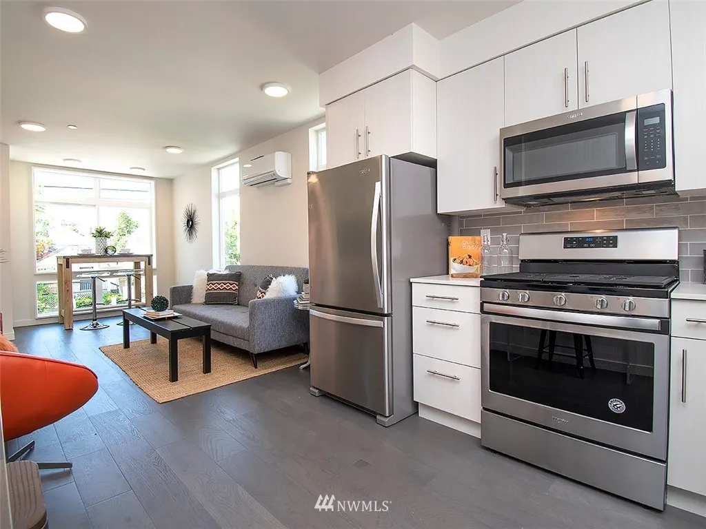 Finally a Live/Work TH done right! This home features a separate unit on the ground floor featuring a kitchen, 3/4 bath, sep elect panel, & sep entrance. Above features kitchen w/ slab quartz counters, SS appliances, A/C, master suite w/ view deck, 2nd bedroom w/ attached bath. Work down & live up, live thru-out, use one & rent the other, or buy as an investment & rent both units sep...so many options! Mins to New Expedia Campus & steps to shops, bars, restaurants, & transit. No HOA dues.