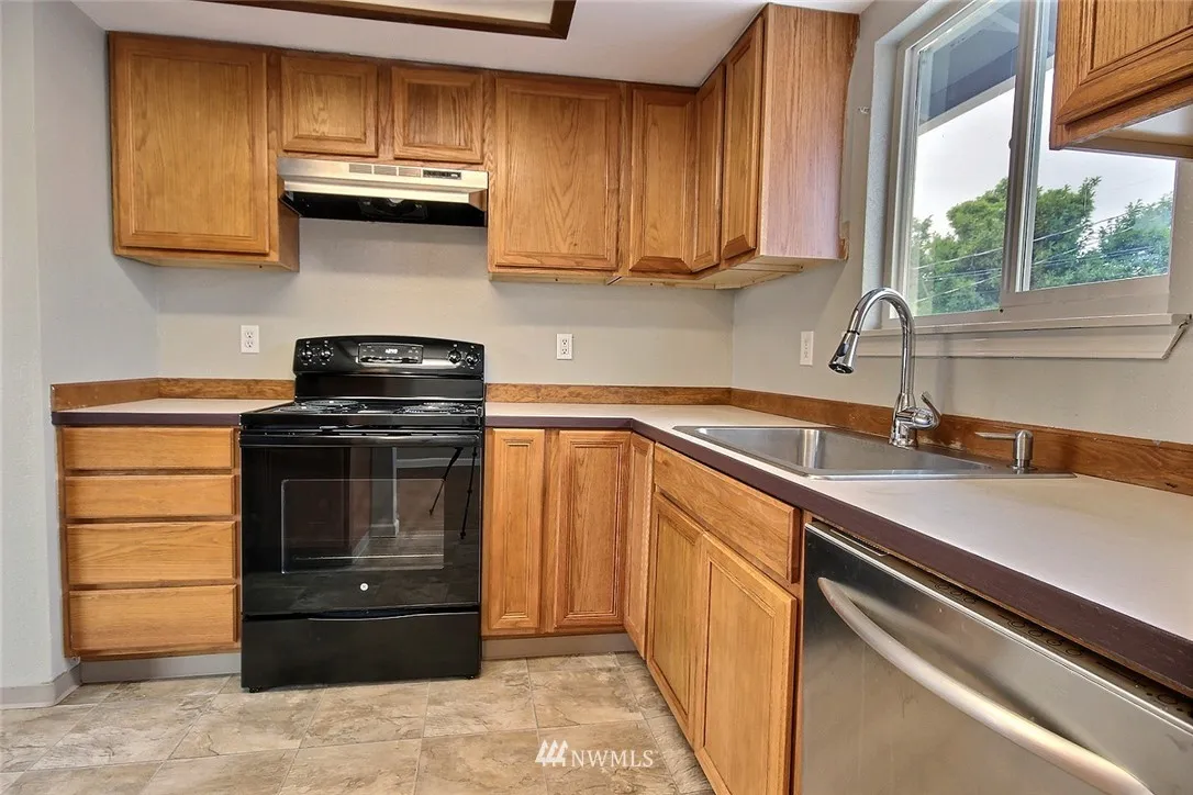 Split level residence offers stylish living spaces and plenty of room for all! Upper level features inviting living rm w/wood-burning frplc and wide-plank-style flooring, dining rm, cheery kitchen w/plenty of cabinets; appliances stay! Also two bdrms, and full bath. Walk-out lower level has large, light-filled family room, second bath w/tile shower and 2 more bedrooms. Deck overlooks backyard, shed, room for RV! Alley access. Prime location close to transit, amenities, schools. Ready to close!