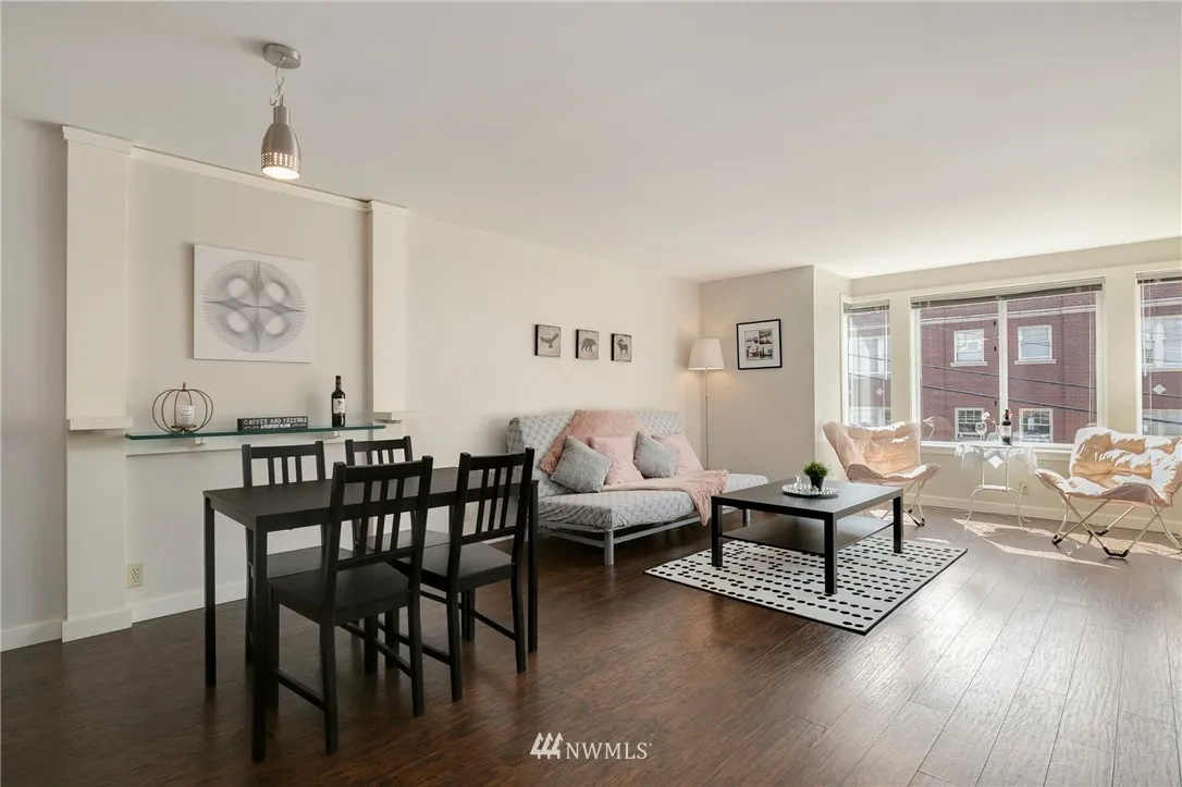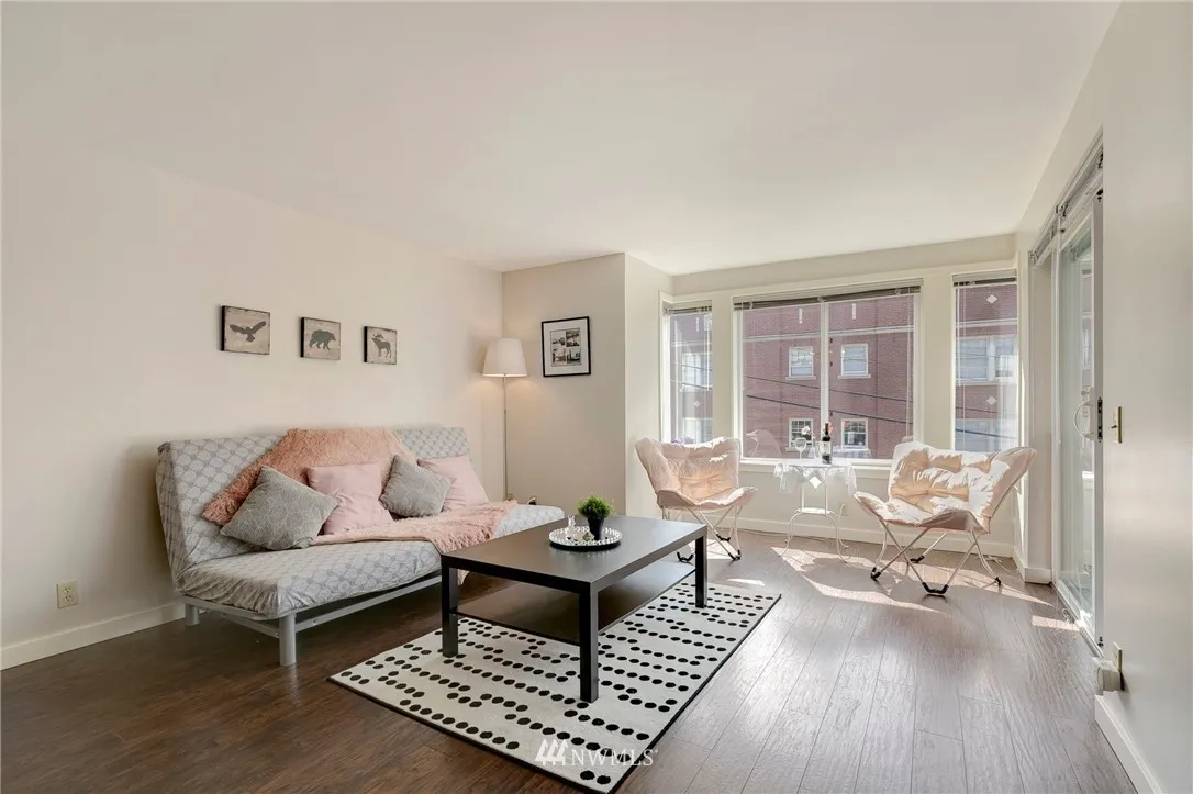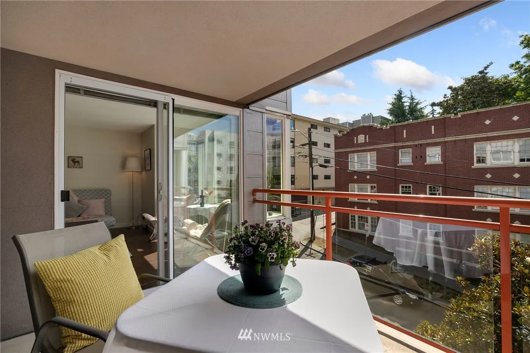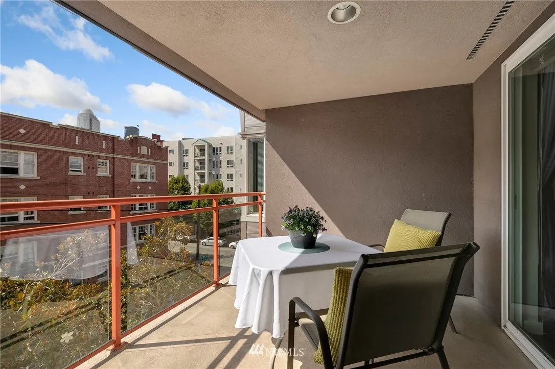 The Metro Building in the heart of Capitol Hill with a 96 Walk Score. Close to dining, shopping, & nightlife. Easy access to 545 bus, light rail & just blocks from Downtown. South facing 1 bed + den with lots of natural light. Spacious private deck. Open Kitchen/living/dining area. SS appliances, granite counters, & hard surface flooring. Den makes great entry foyer or office space. In-unit laundry. Storage room across the hall. Secure parking garage. Pet-friendly. No rental cap.