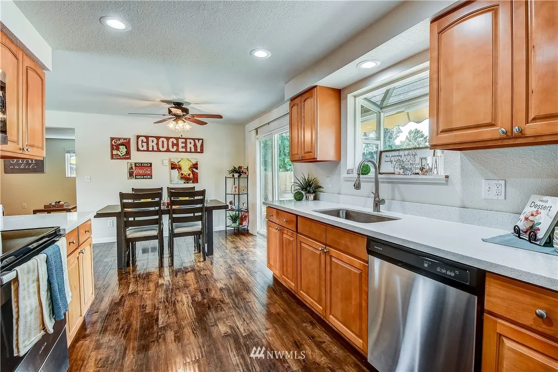 NO HOA! RV parking, Fully fenced, {big and flat} backyard. Full remodel including engineered hardwood flooring, quartz counters, SS appliances, spacious utility room, converted garage and a newer roof. Open floor plan, new kitchen cabinets. Covered carport parking and room for a total of 9 cars. Large 10' x 14' workshop in backyard with electricity. Convenient location near downtown Arlington, Outlet mall, I-5, Hwy 9, Smokey Point. Close to transit options. You don't want to miss this one!