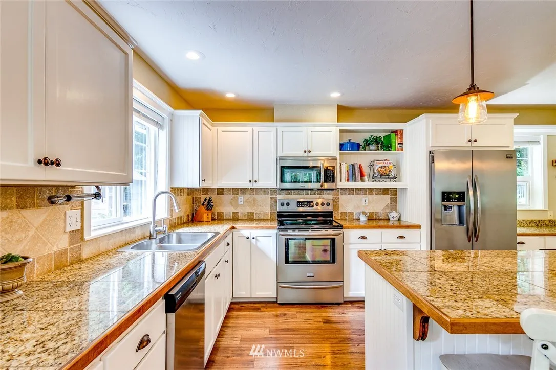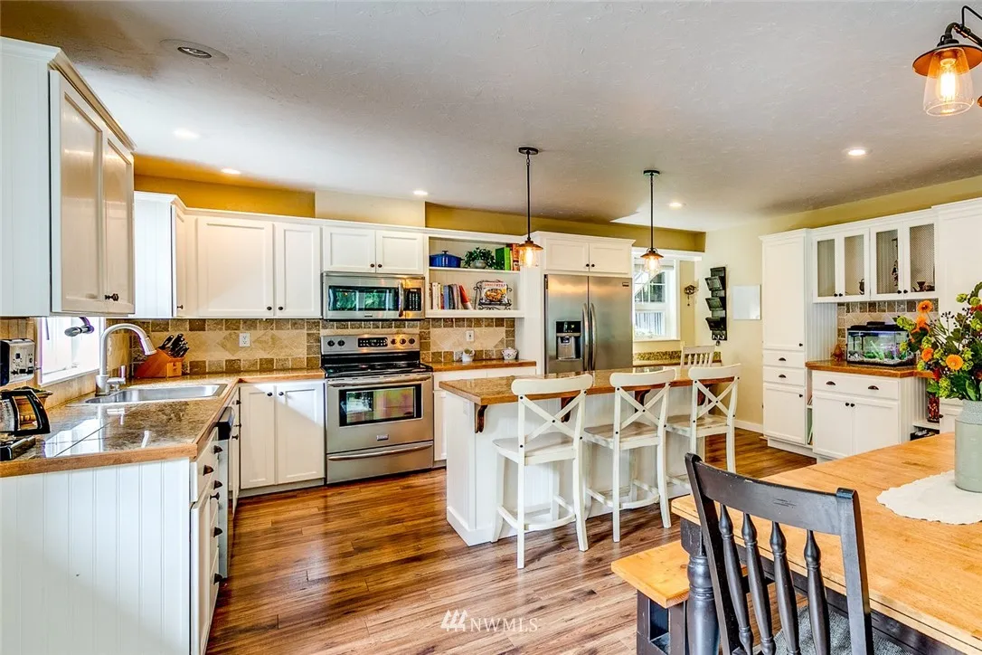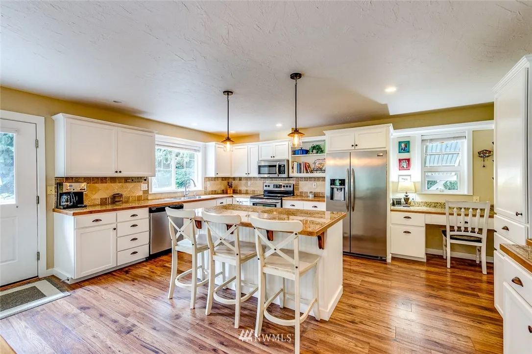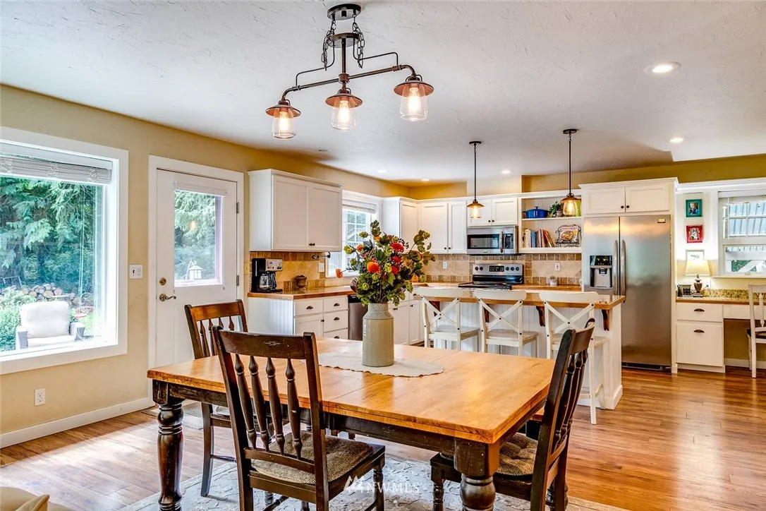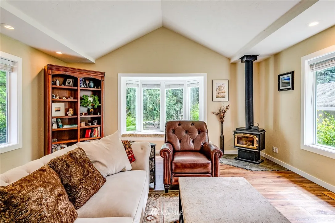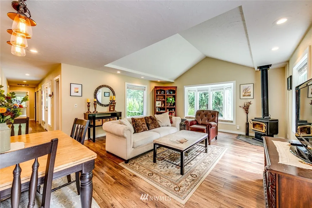 Don't miss this charming 3 bedroom rambler on 2 acres with beautiful landscaping, multiple sheds and a detached 2-car garage with shop space. You will love the open floor plan with vaulted ceilings and large windows that provide ample sunlight throughout the home. Stay cozy by the wood stove or take a dip in the soothing hot tub on chilly winter days. In the summer, enjoy hosting gatherings, gardening, and sipping your morning coffee on the patio. Located in Poulsbo, close to Bainbridge Island.