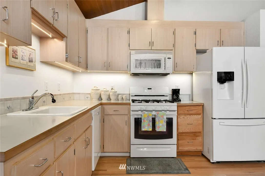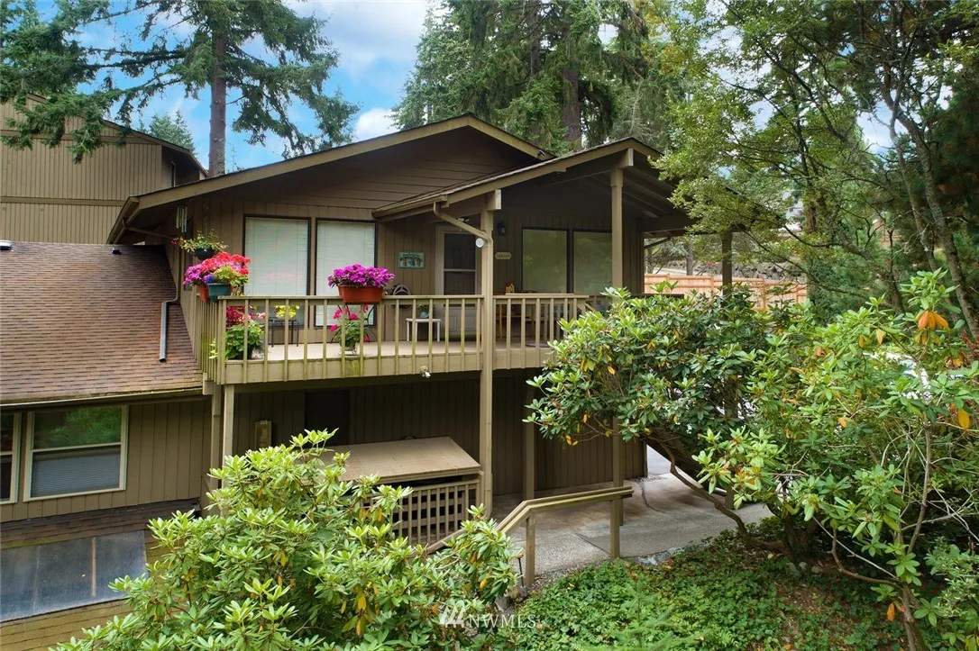 NEW PRICE! Stand-alone condo floor-plan at 5 Corners with total privacy - NO units below, above or adjoining! Windows on four sides of unit in lush setting of 5+ acres. Gas fireplace in living room w vaulted wood ceilings, new paint. Updated kitch appliances, new bath. Private deck, 1 covered garage plus 1 assigned parking +3 storage spaces. Complex w outdoor pool, cabana, tennis ct, fire-pit, dog walk, picnic tables and walking trails connect to Yost Park. No Rental Cap. Prof managed bldg.