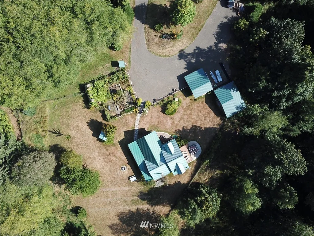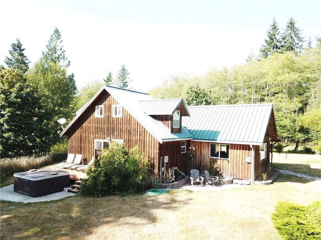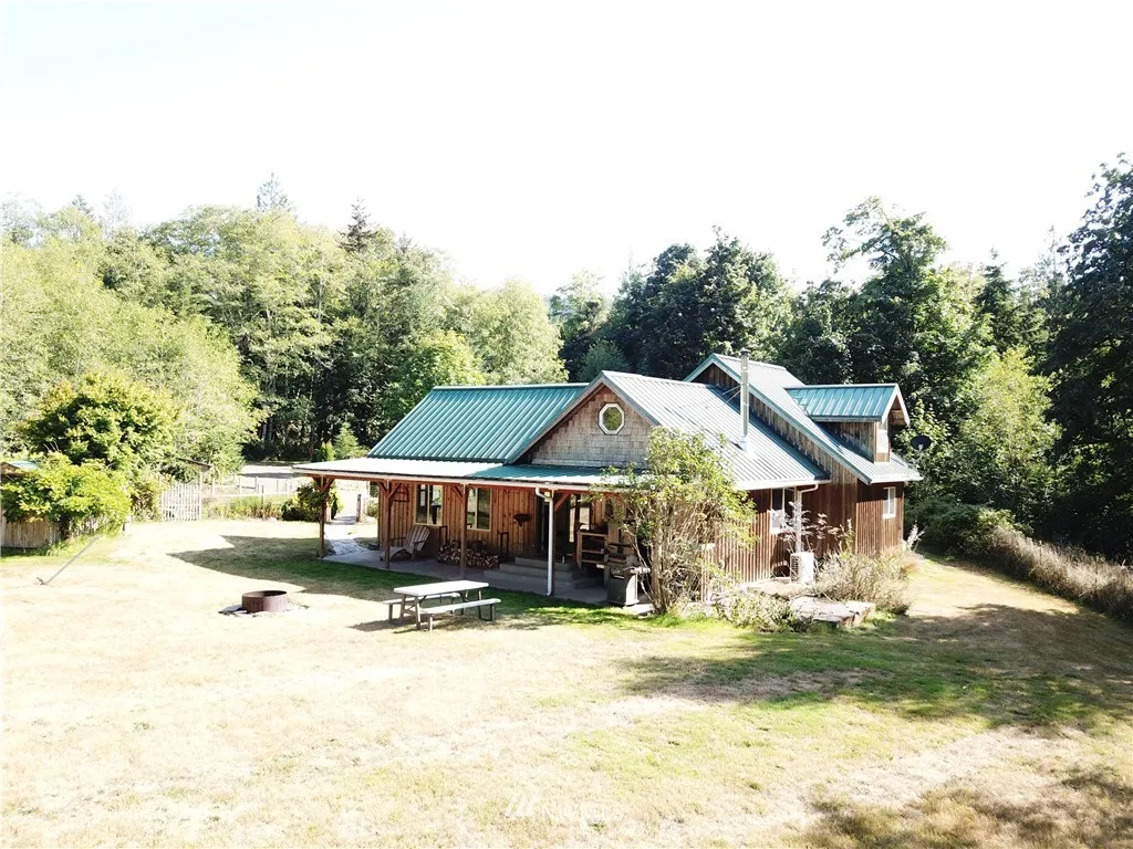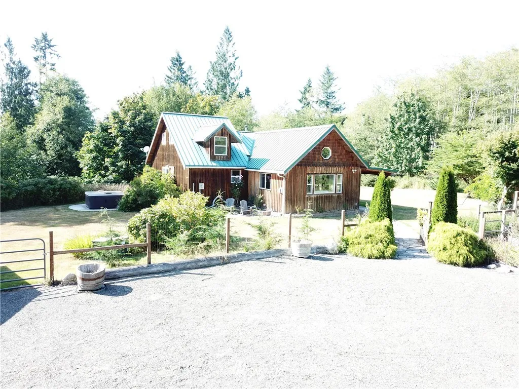 Beautiful cabin on 10 acres of lush forest+landscaping+creek.SHOP! Relax in the hot tub as you sit under the stars! Full of light! w/vaulted ceilings & open floor plan. Large country porch looks over the fruit trees, garden, & expansive lawn. Extensive wood and metal work...featuring an ornate custom spiral staircase, plus a bonus room up the ladder..perfect for forts or bonus bedroom! Property is bordered by Fielding Creek & has a zipline to the beach! Property sub-dividable to 5 acre parcels
