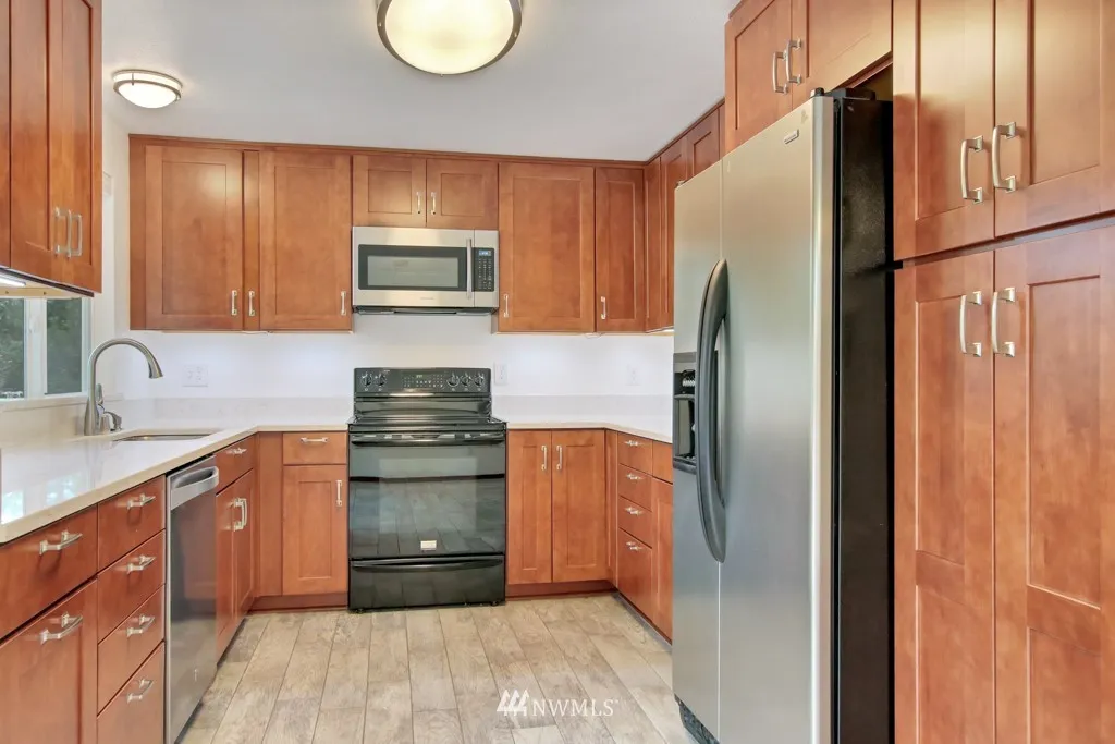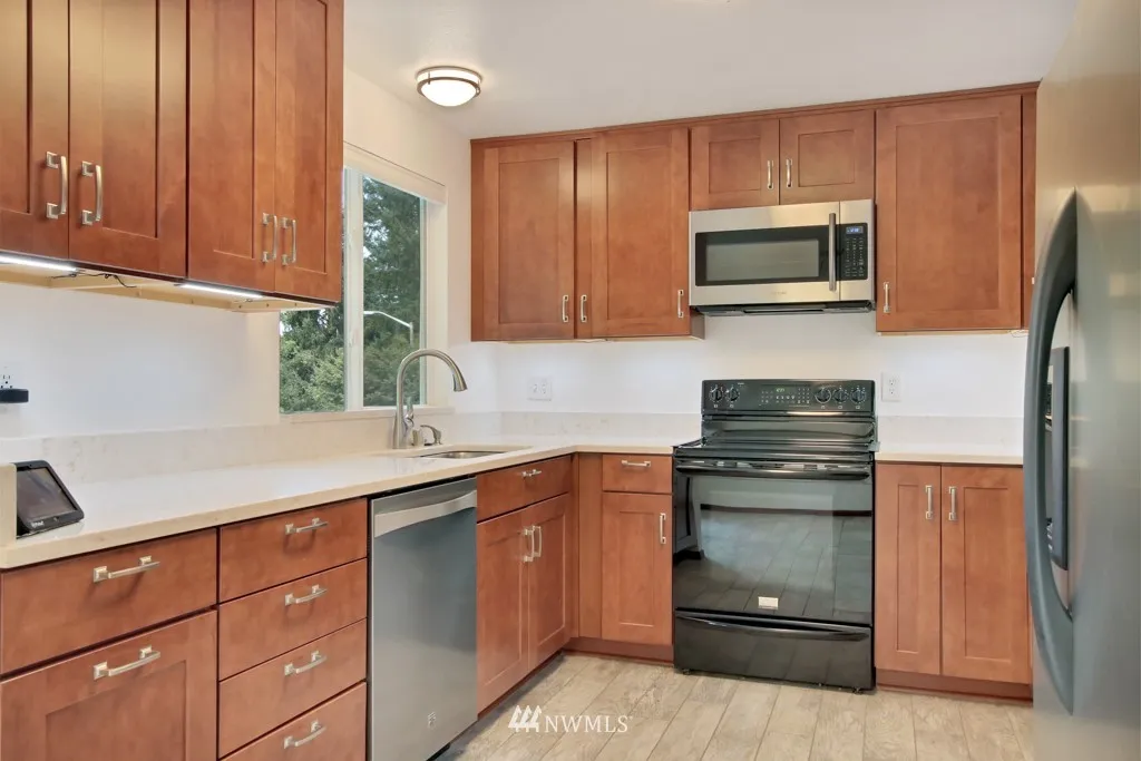 Located in a quiet cul-de-sac, home features skylight entry, new roof, new windows, new hardiplank siding, new 200% high efficient water heater & gas FP. Beautifully remodeled Kitchen w/quartz counters, soft-close cabinets w/under lighting + new SS appliances. Covered new Trex deck off kitchen overlooking fenced backyard w/new storage shed. Home is secured w/ADT Pulse. Seller offering 5k credit at closing for painting or? A great opportunity to make this your own! 1 yr home warranty included!