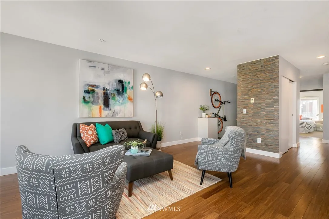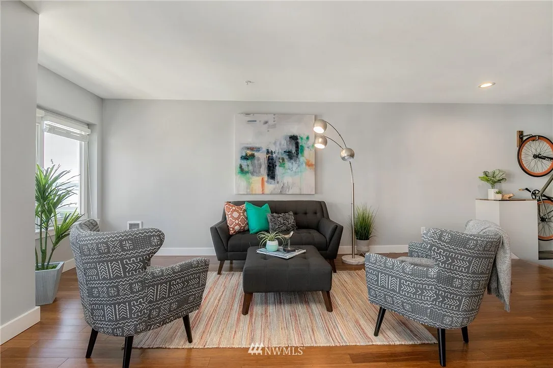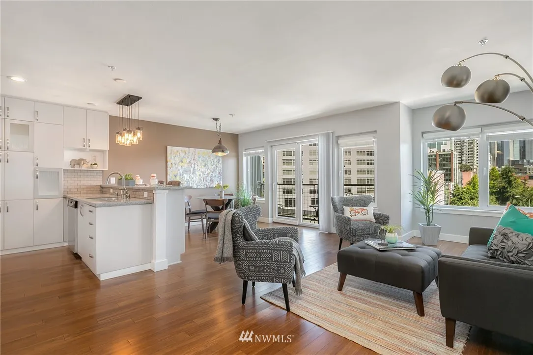 Updated South Facing top floor unit at Site 17. This spacious 2 bedroom floor plan, features wood floors, updated kitchen, & bathroom, in-unit laundry, and private balcony. Views of the City, Elliot Bay & Mt. Rainier. Close to all the restaurants, bars, and nightlife that Belltown has to offer. Rooftop deck is just outside the unit. Gym, lounge area, BBQs, On-site manager, and secure parking. Pet Friendly, no rental cap. Access to new waterfront park will be just outside with the viaduct gone