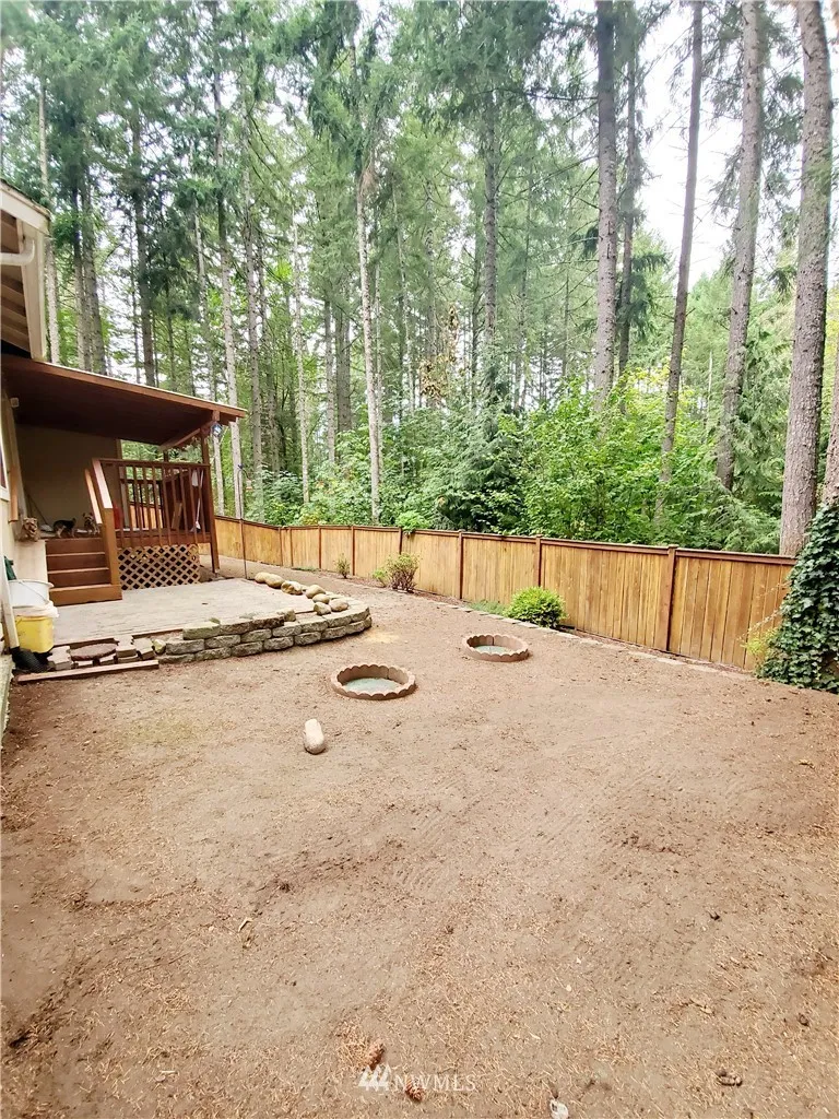 Come see this almost 1500 SqFt rambler. Spacious layout with 2 living spaces. Covered back deck with fully fenced back yard that backs up to green belt. Heat pump with AC, gen switch with all the perks of living in the Clearwood community